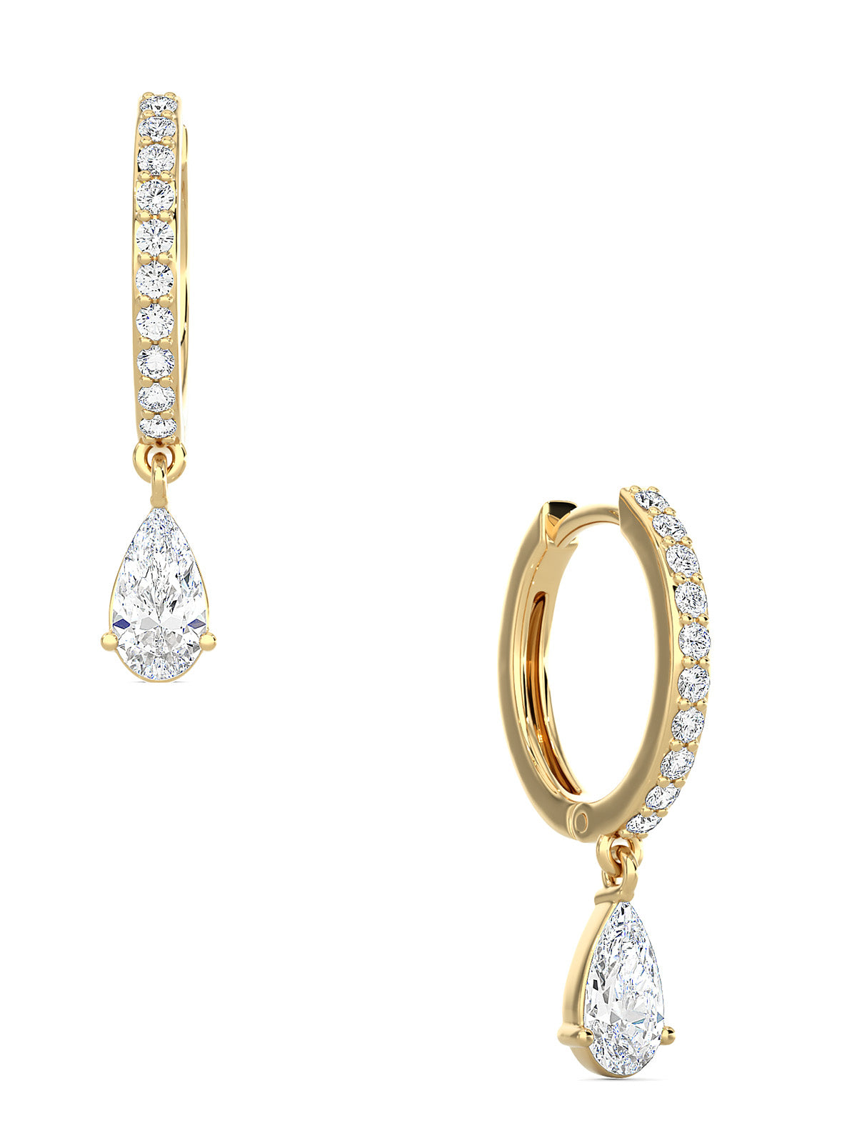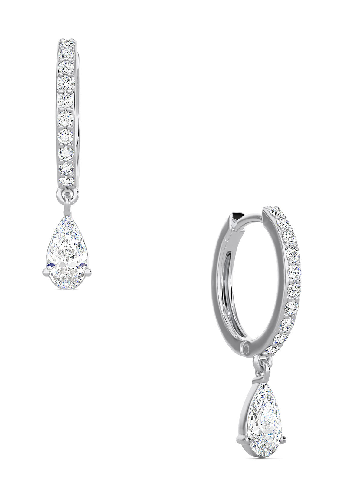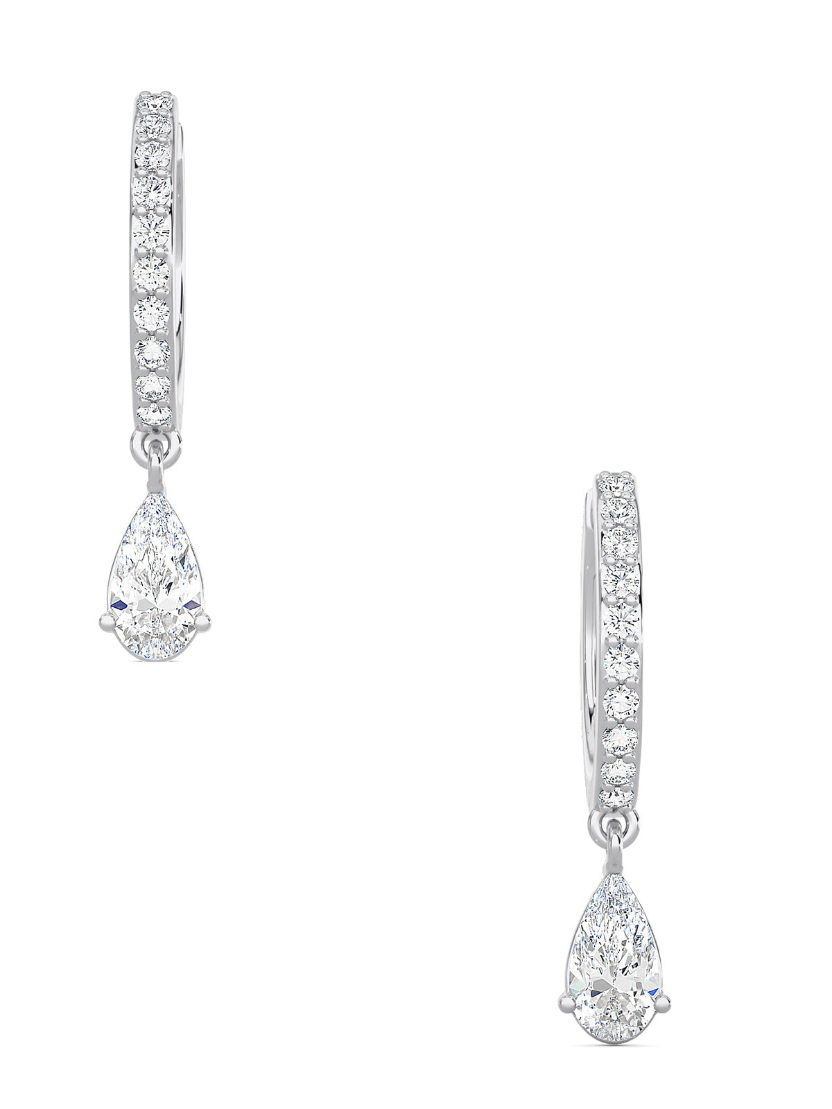1.25 total carat weight terra drop earrings with pear shape lab grown diamonds E-F color and VVS-VS purity.