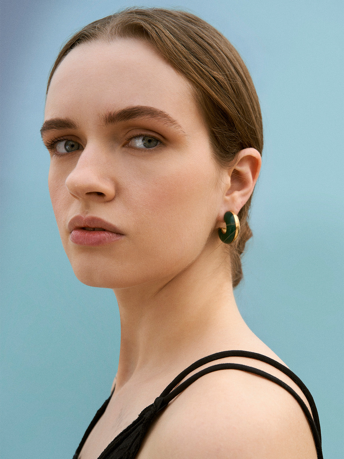 Introducing our exquisite two-sided hoop earrings, a perfect blend of elegance and versatility. These hoops are designed to offer you two stunning looks in one pair of earring.