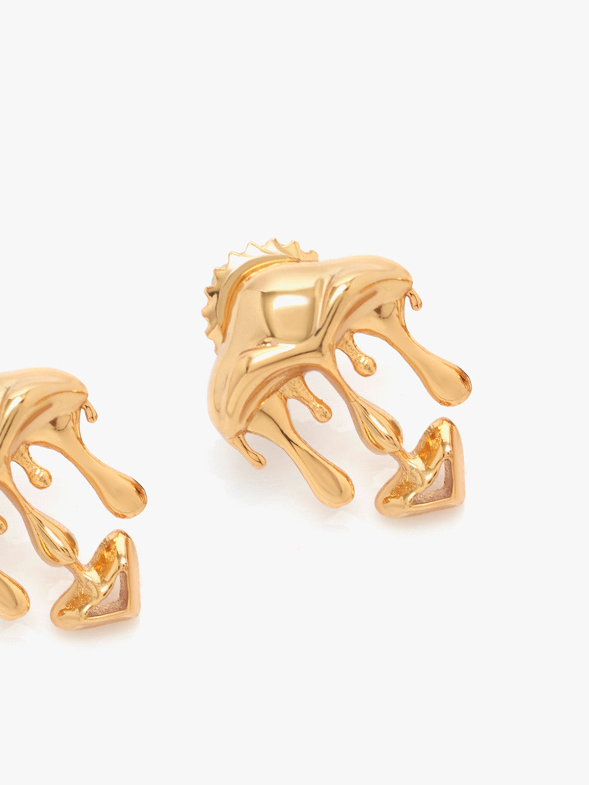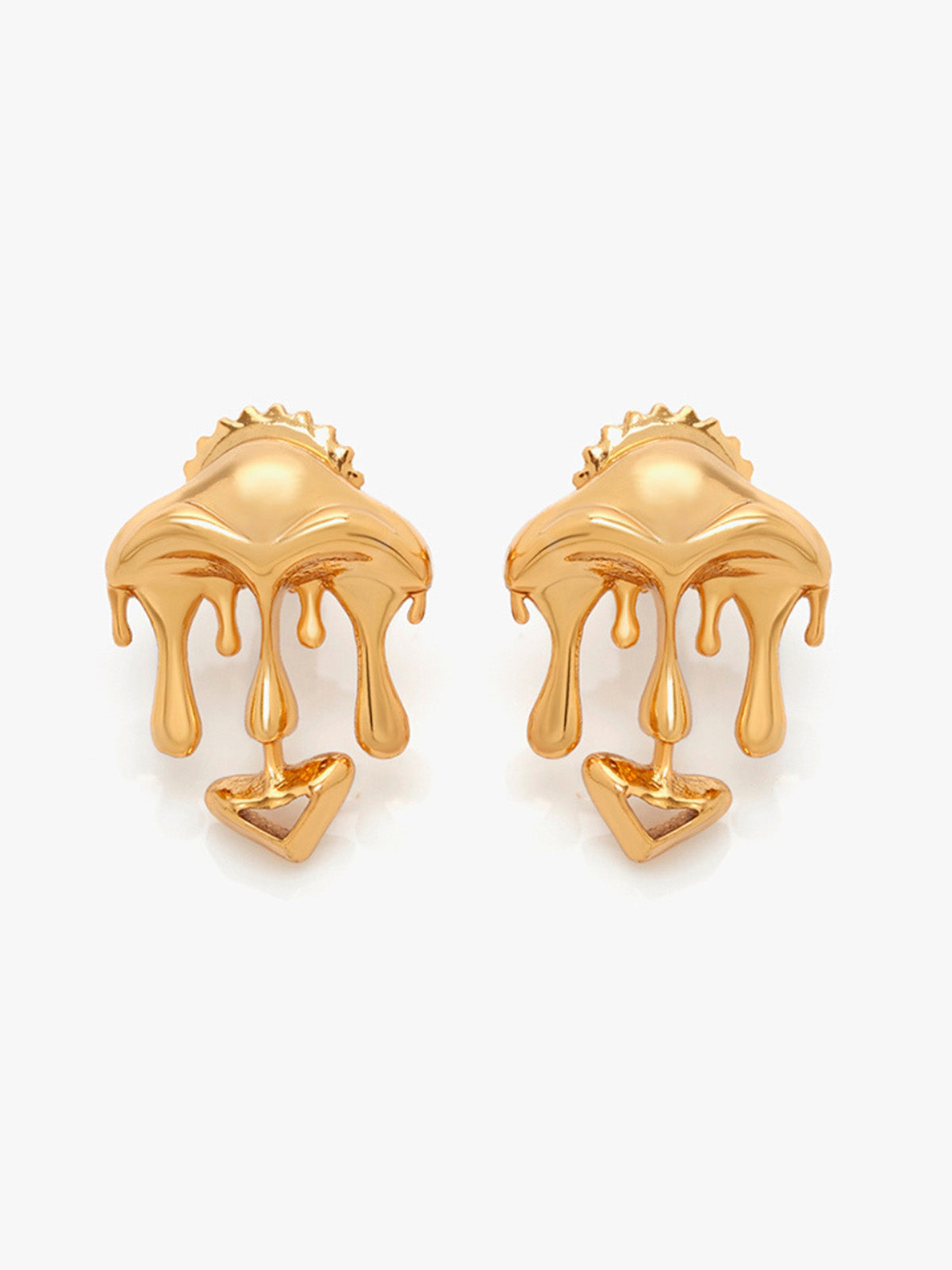 Descend into the realm of The XL lazuli sculpt earrings , where sophistication gracefully drips with euphoria in the form of stud earrings adorned with the Shroom motif. Each delicate drip tells a story of timeless appeal, touched by the radiant glow of 22K gold. Worn alone or with other pieces, they emanate Bold feminine refinement.