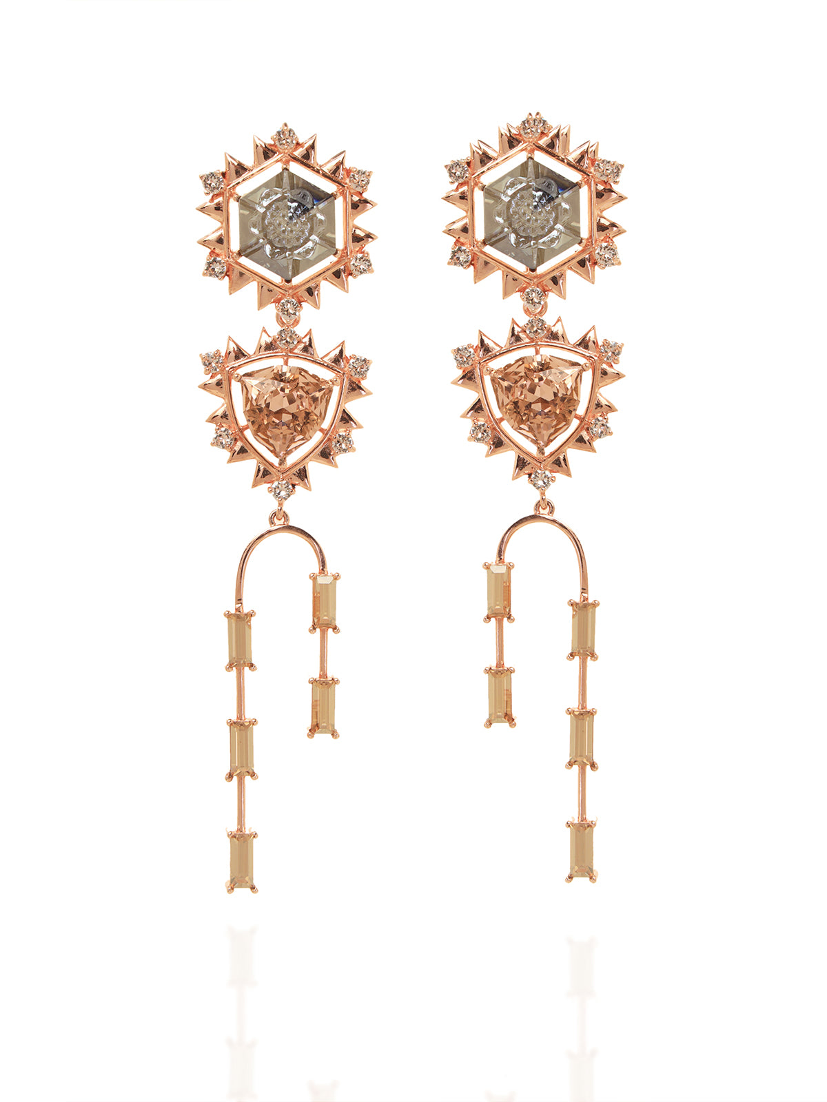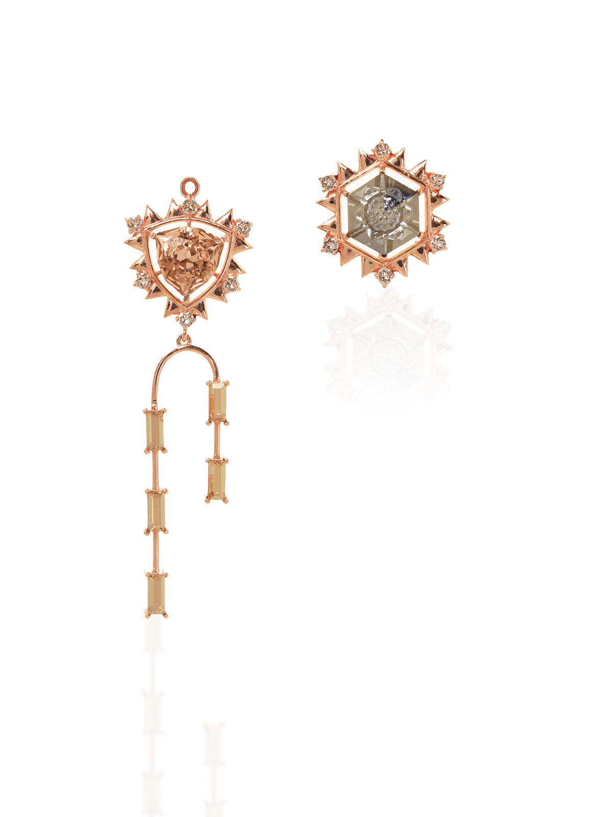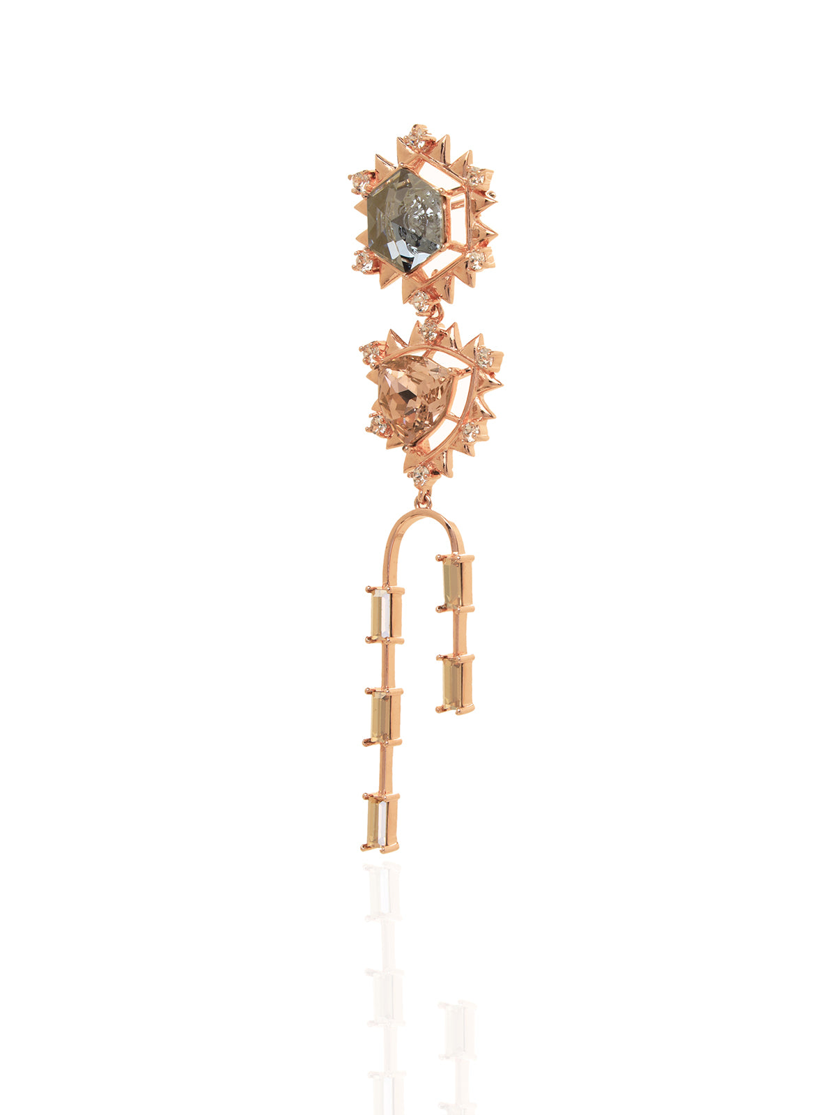 Detachable hanging studded with Grey and golden shadow swaovski crystals - worn with the jacket as a hanging or as an earstud without