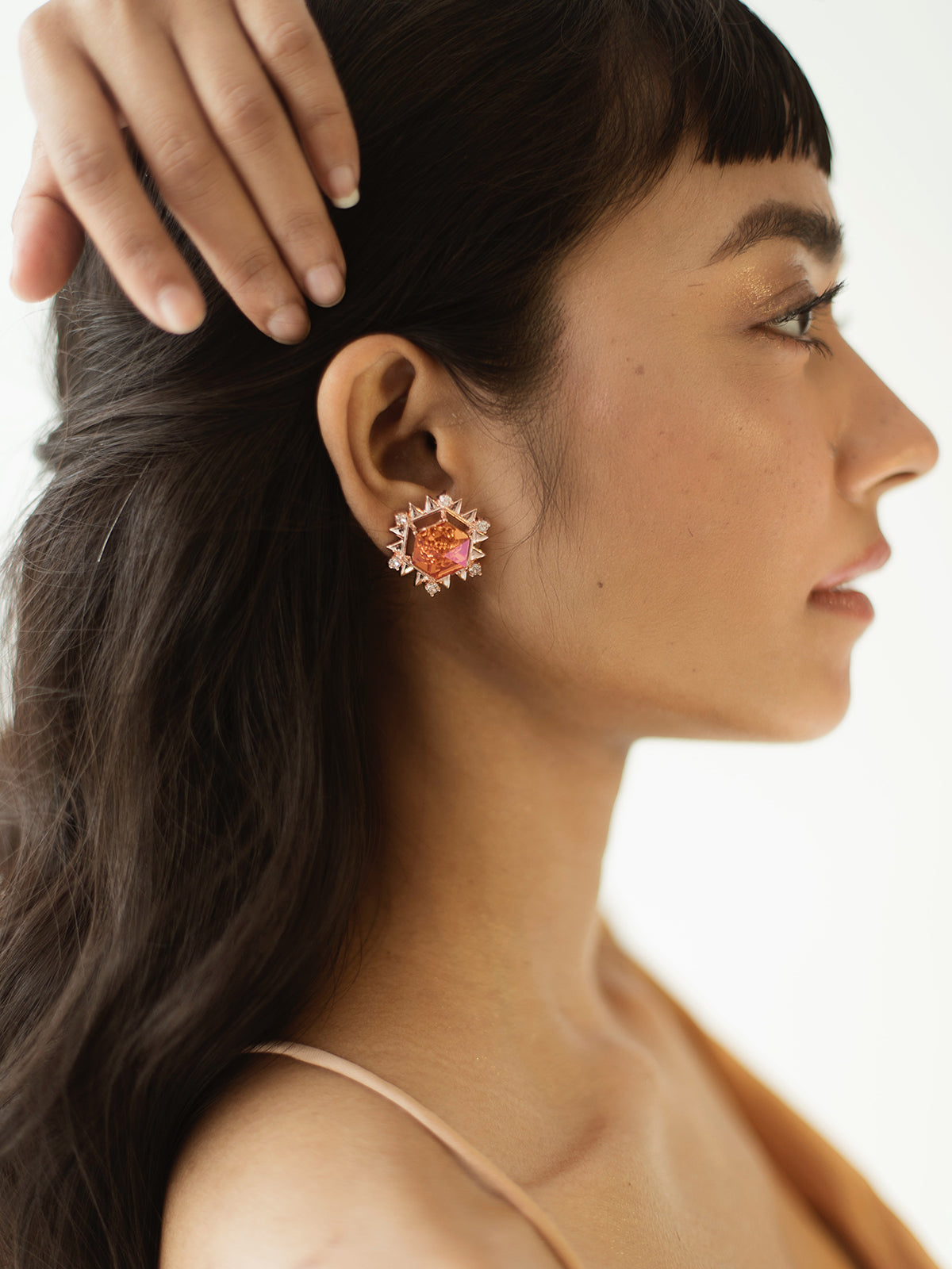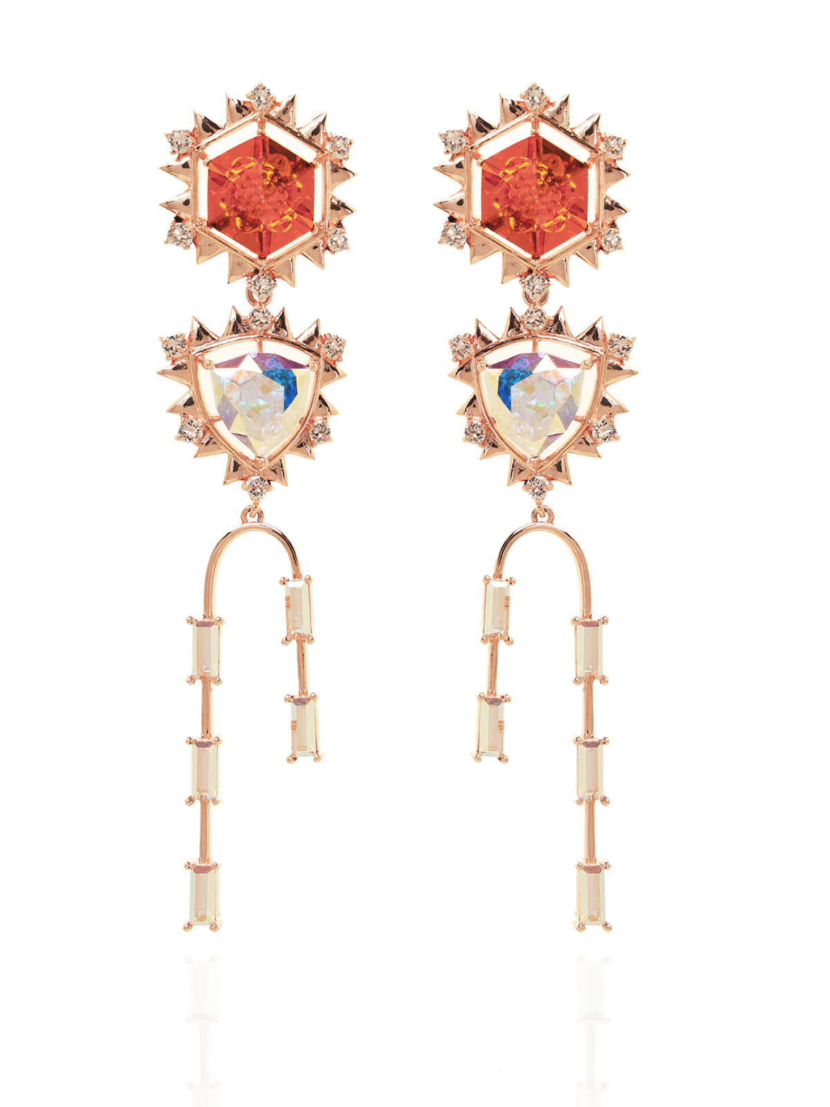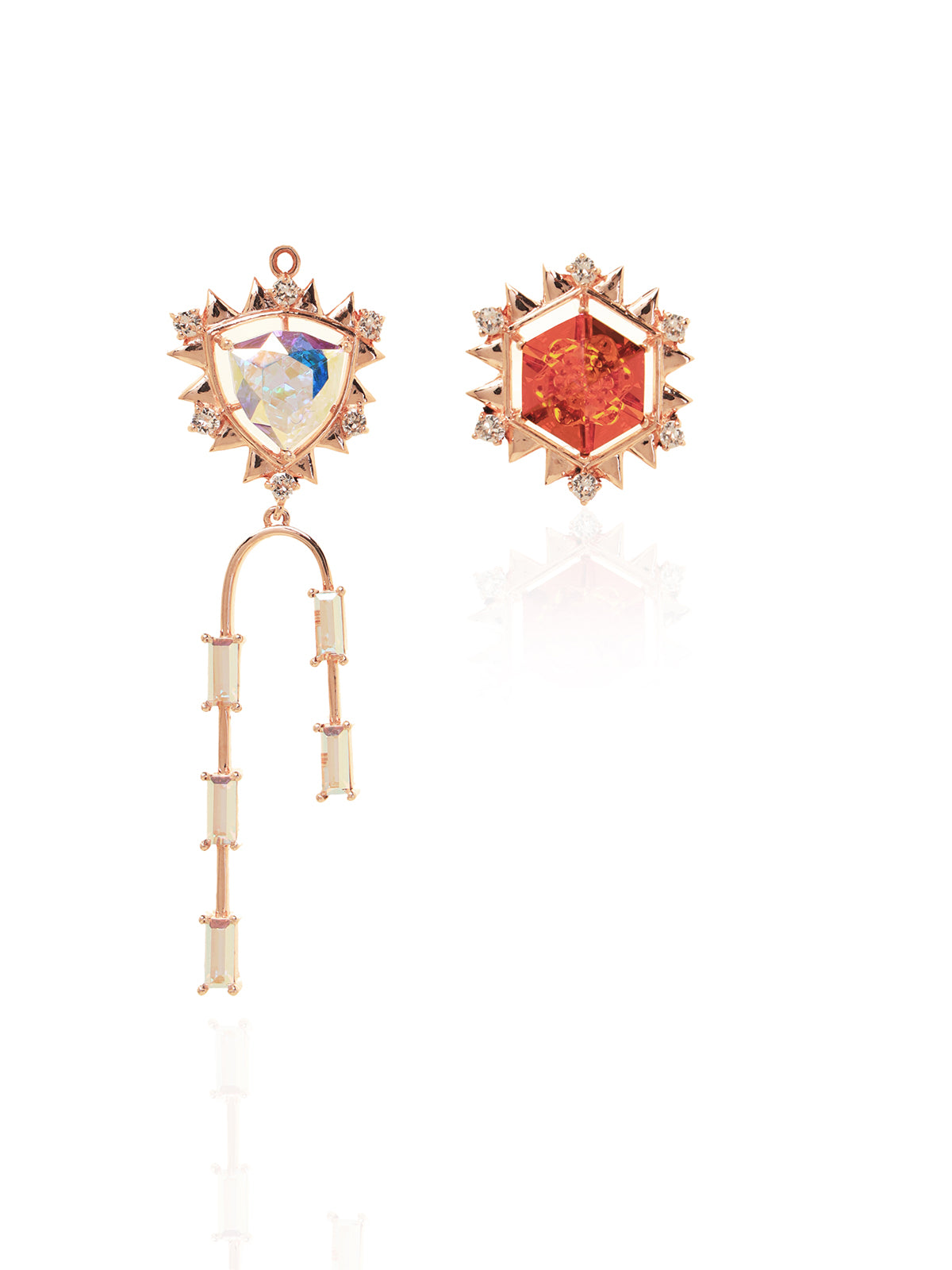 Detachable hanging studded with Grey and golden shadow swaovski crystals - worn with the jacket as a hanging or as an earstud without