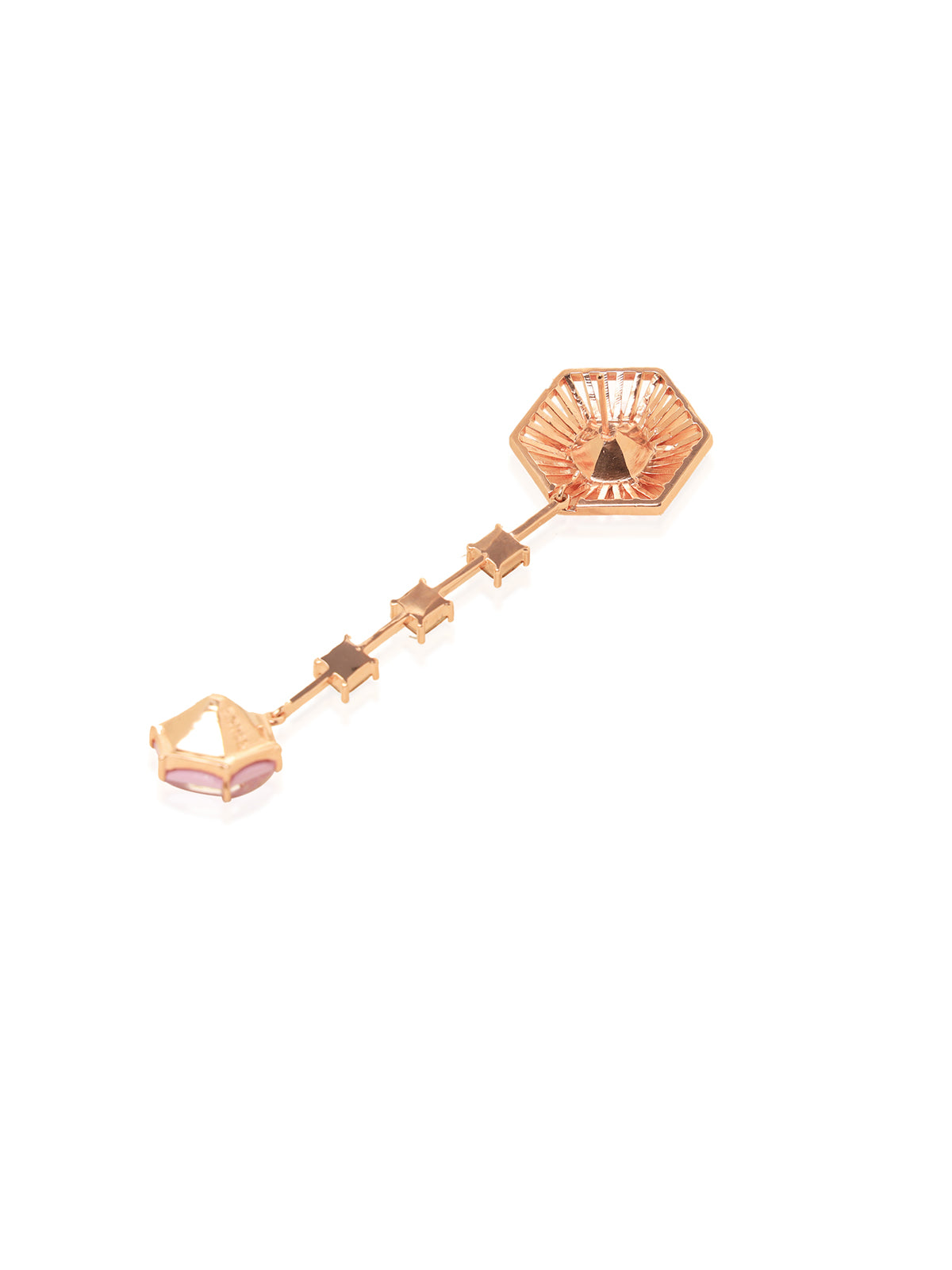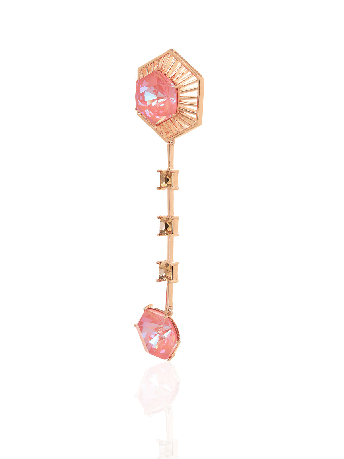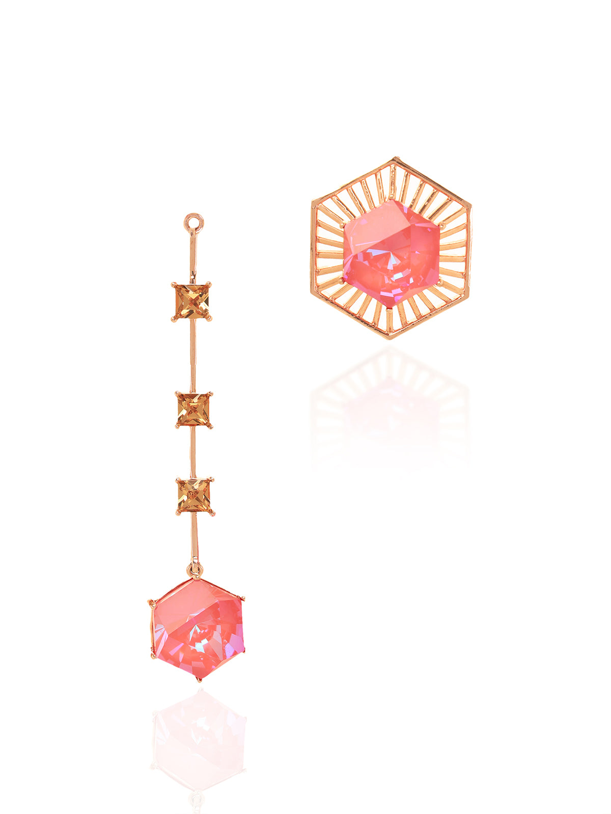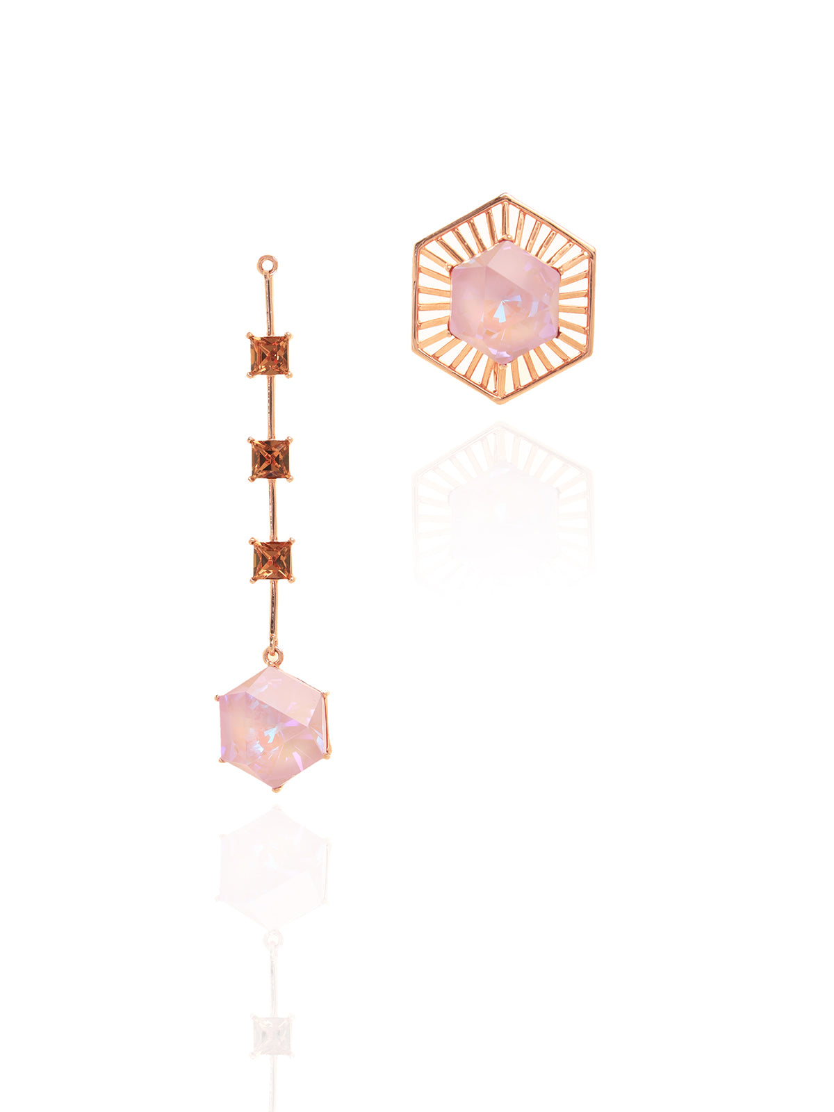Detachable hanging studed with pink hexagon swarovski and smoky quartz squares - worn with the jacket as a hanging or as an earstud without
