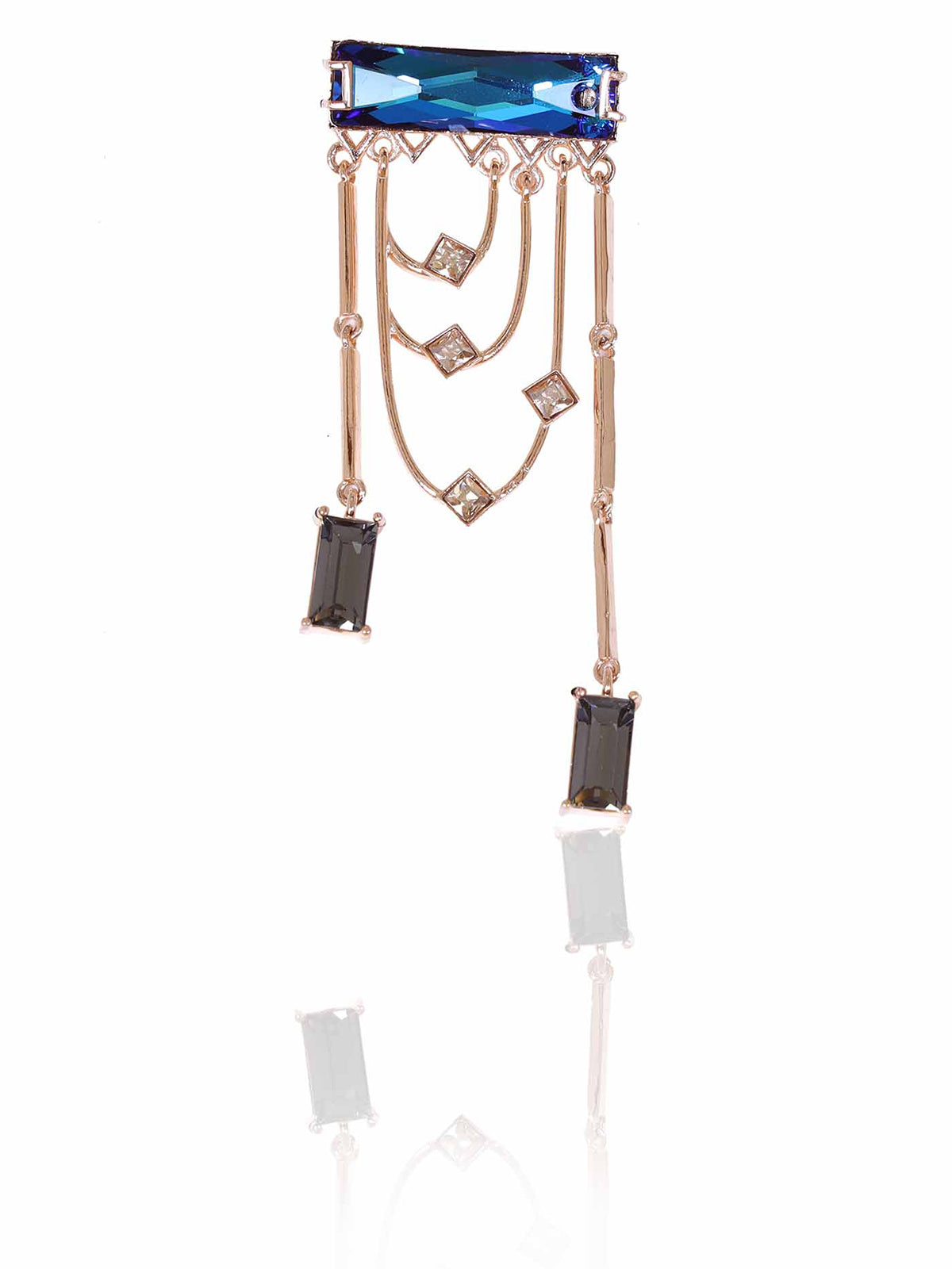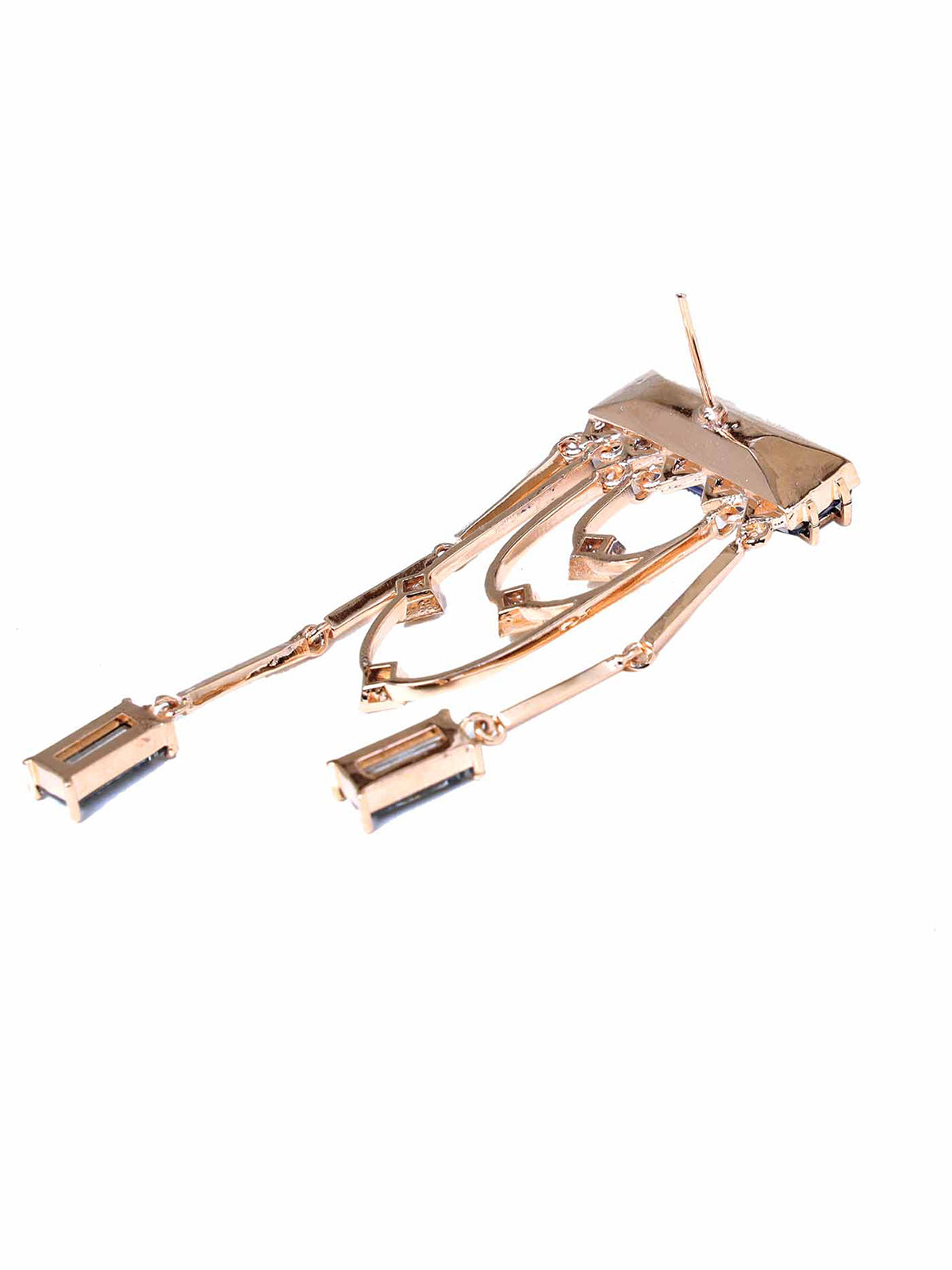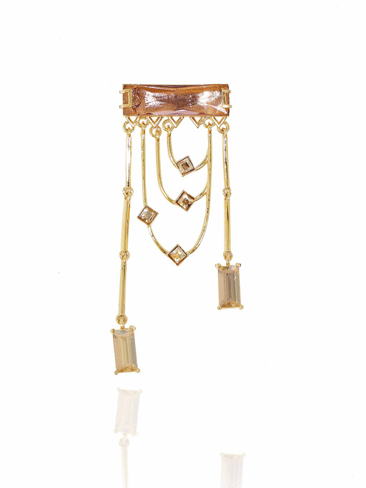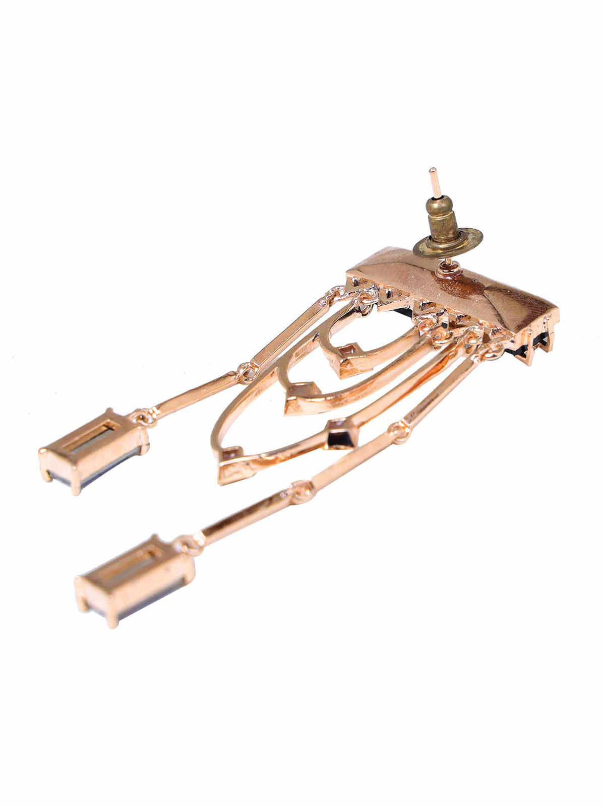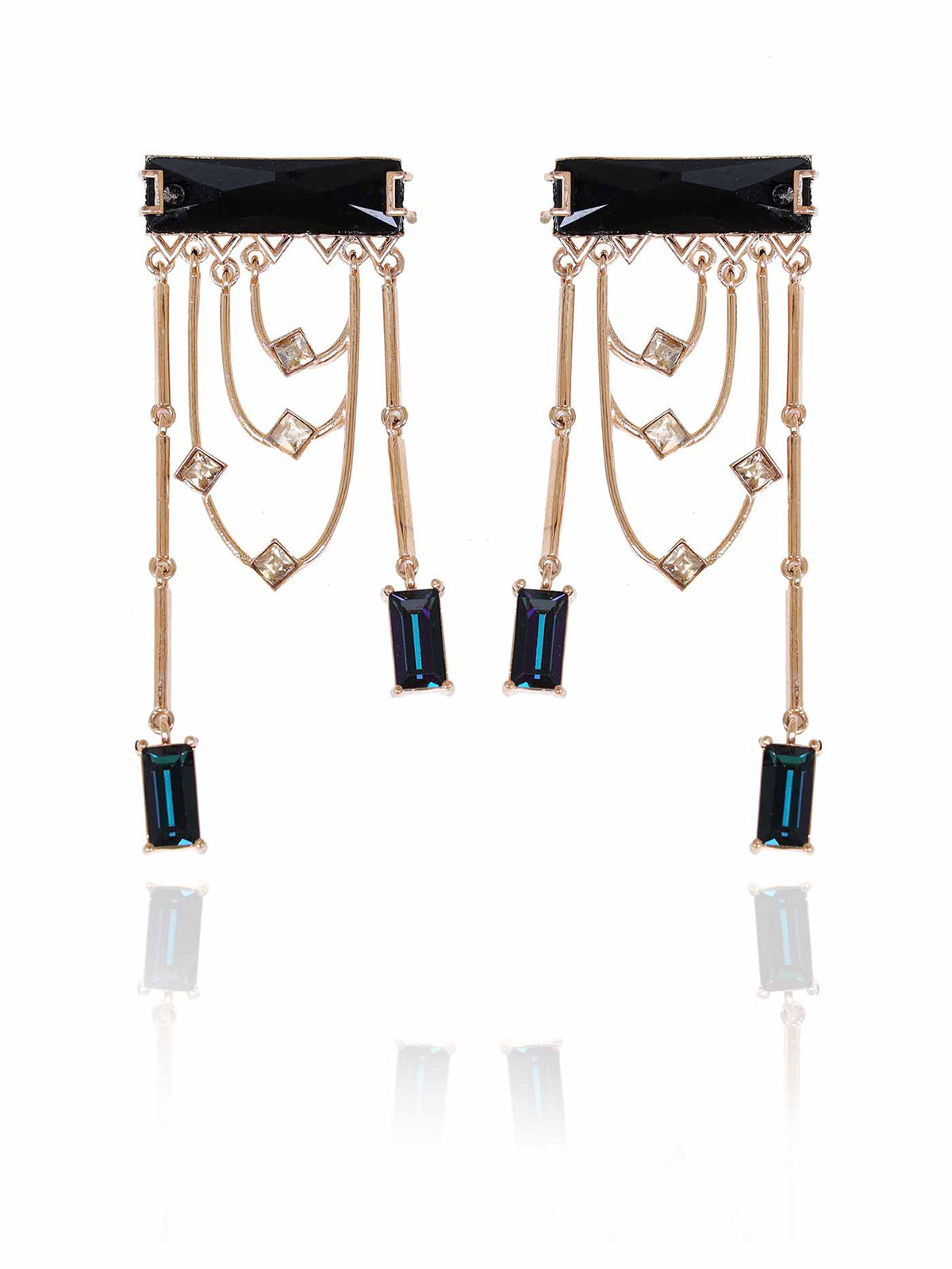 Magnificent dangler earrings adorned with a fancy cut princess Swarovski Baguette and sparkling golden shadow crystals. The earring dangles and sways with each and every movement.