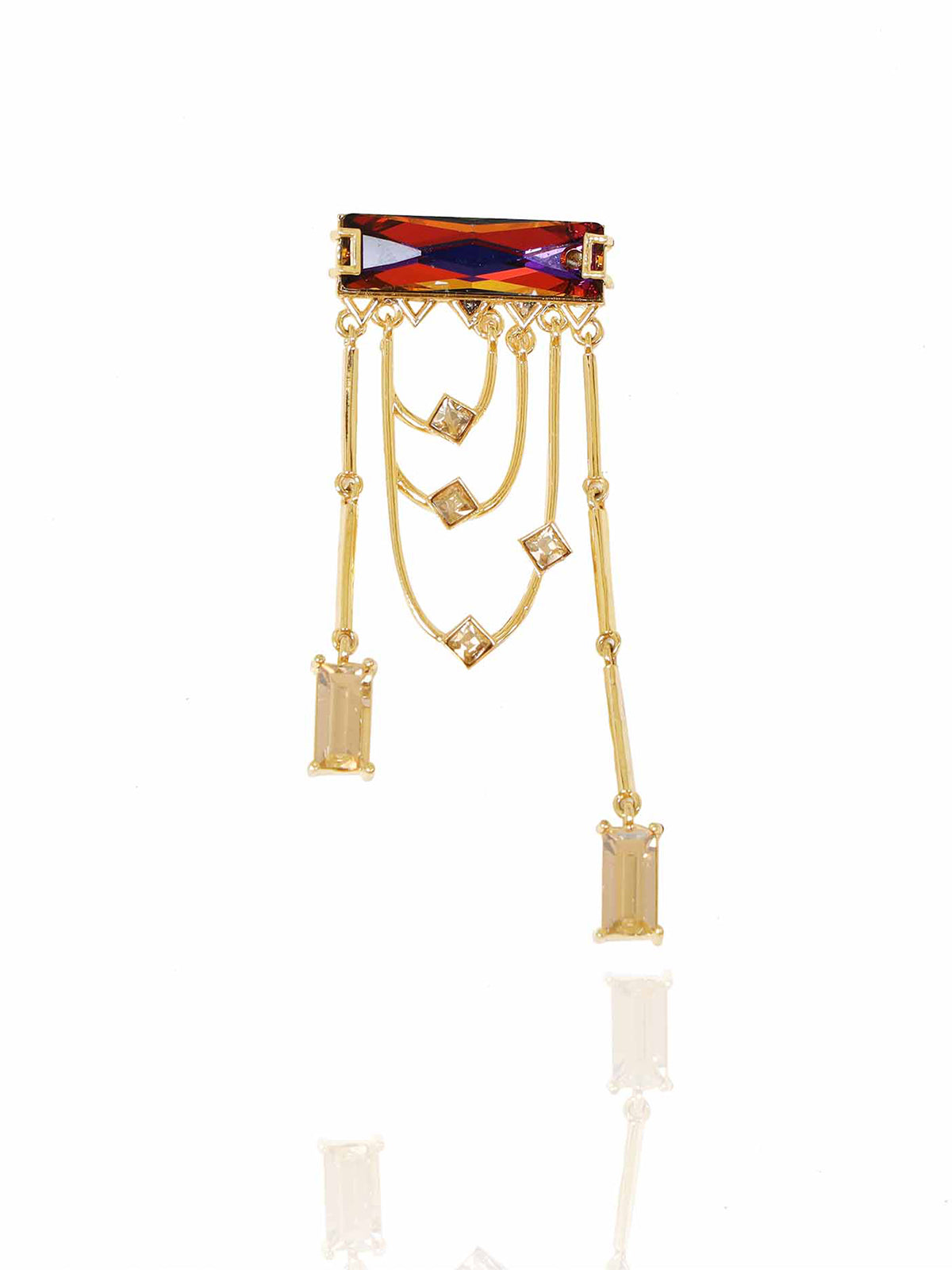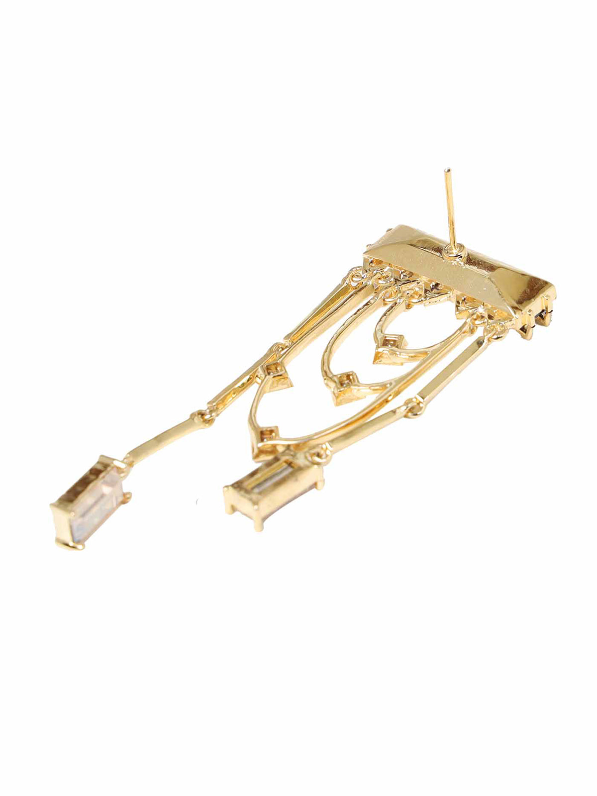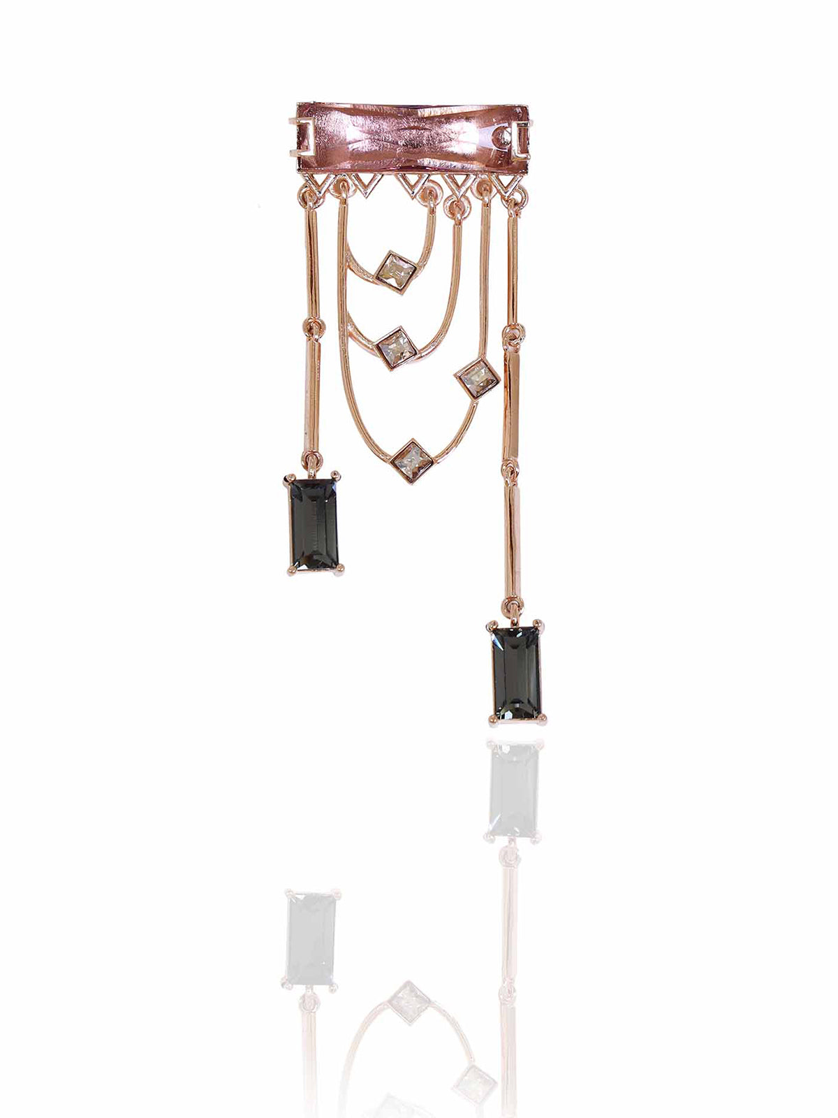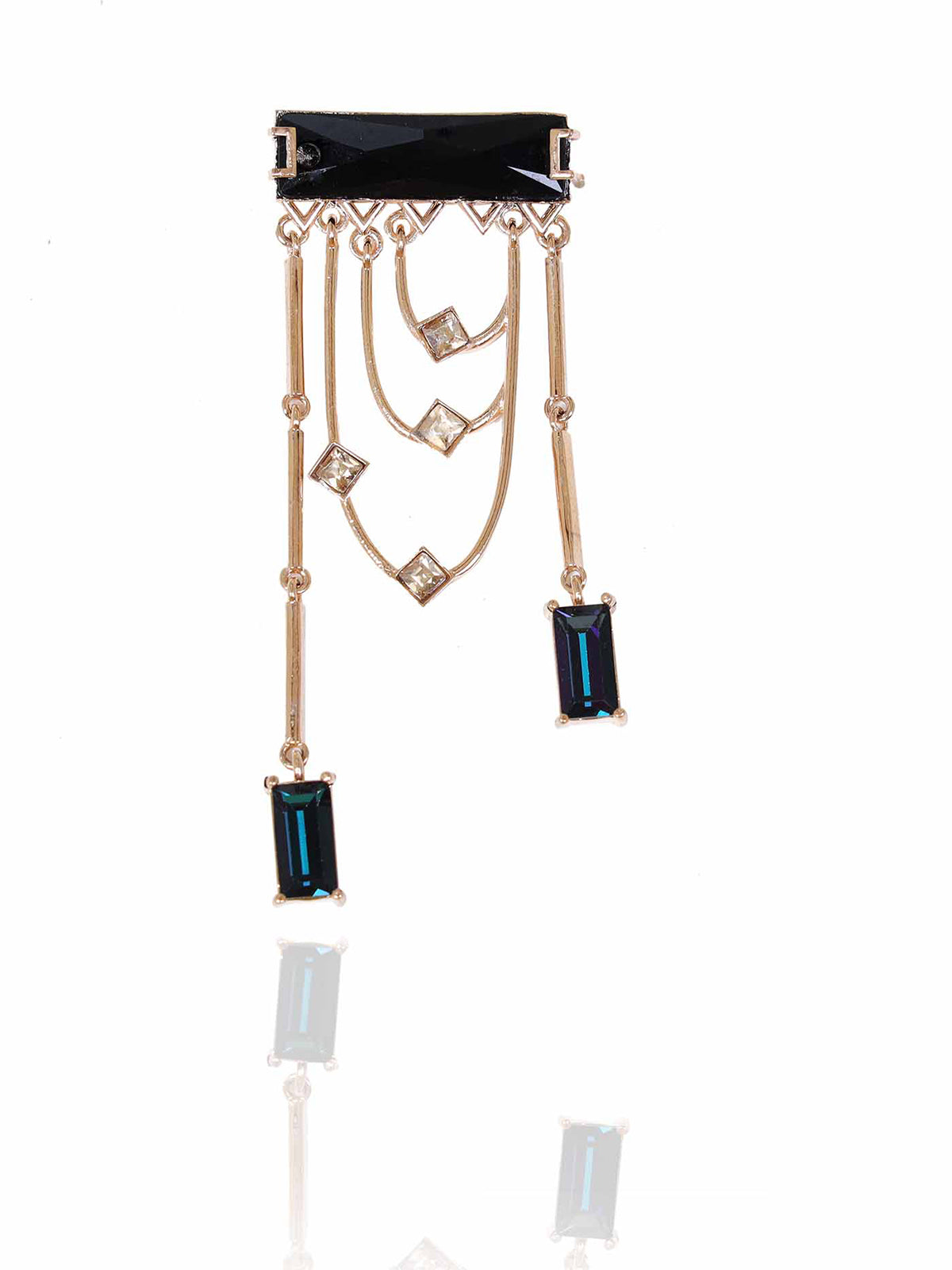 Magnificent dangler earrings adorned with a fancy cut princess Swarovski Baguette and sparkling golden shadow crystals. The earring dangles and sways with each and every movement.
