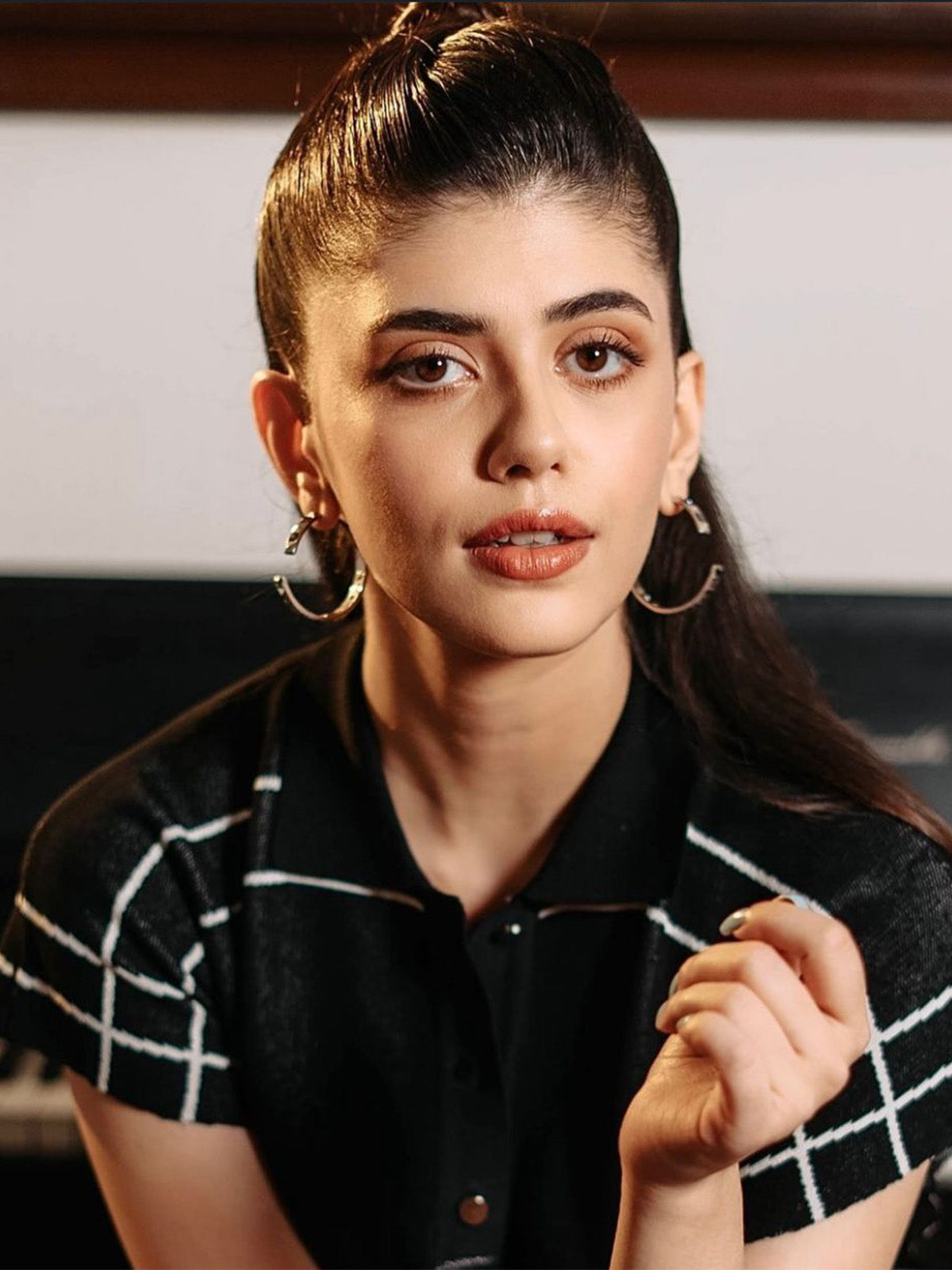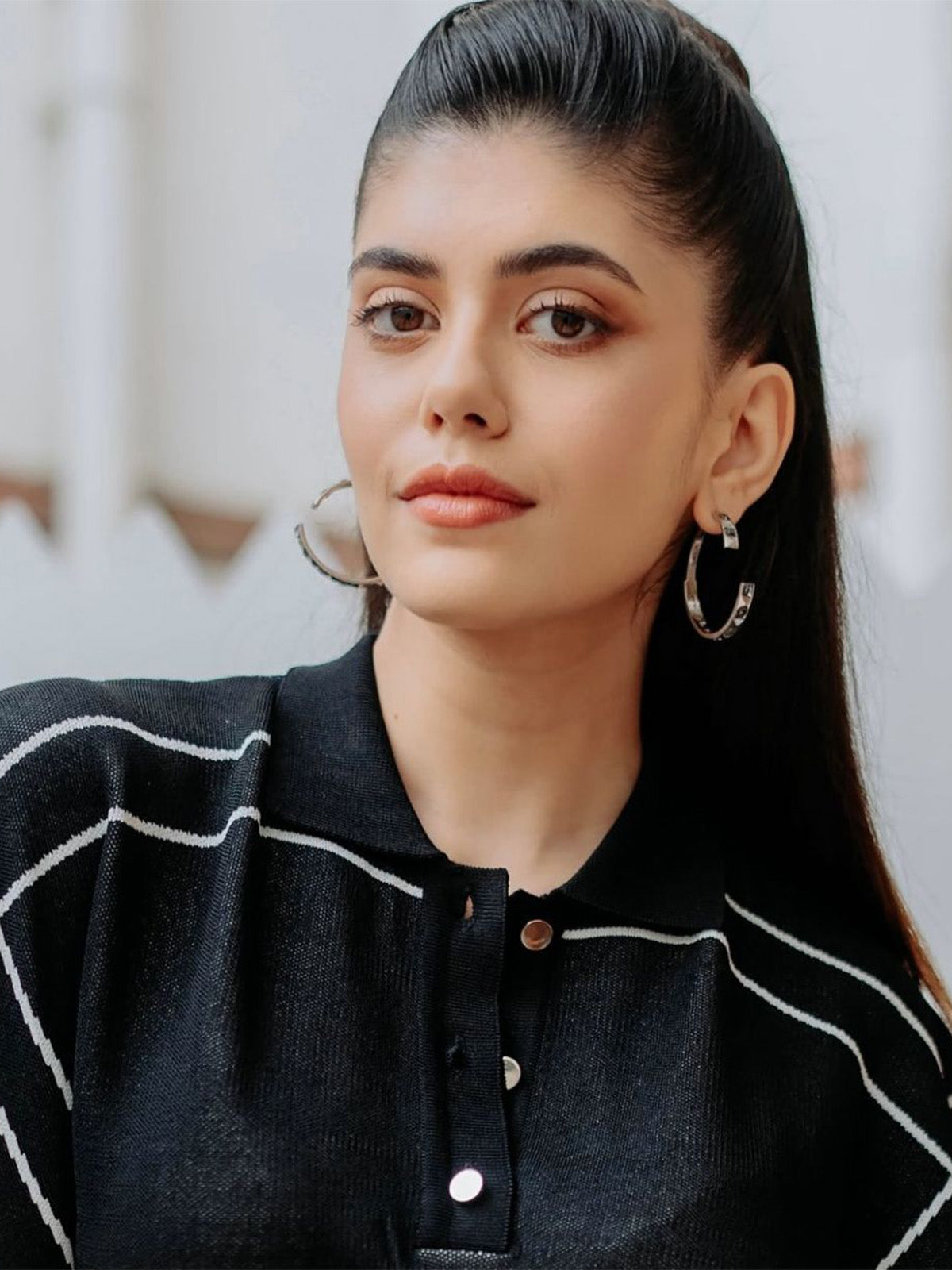 Sanjana Sanghi in Half Hoop Crystal Earrings