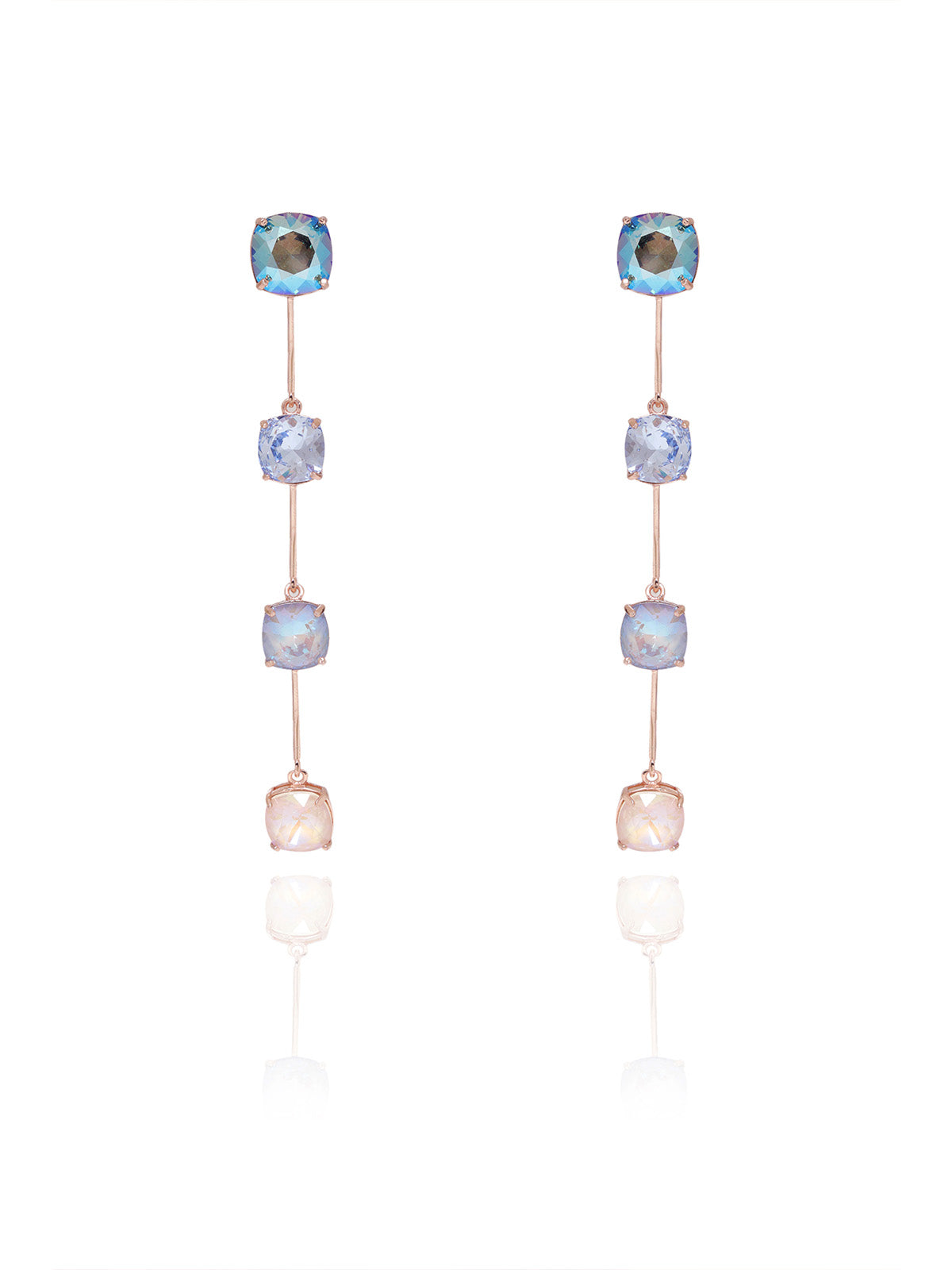 We love how the ombre tones of blue and pink hues define these straight lined art deco earrings.