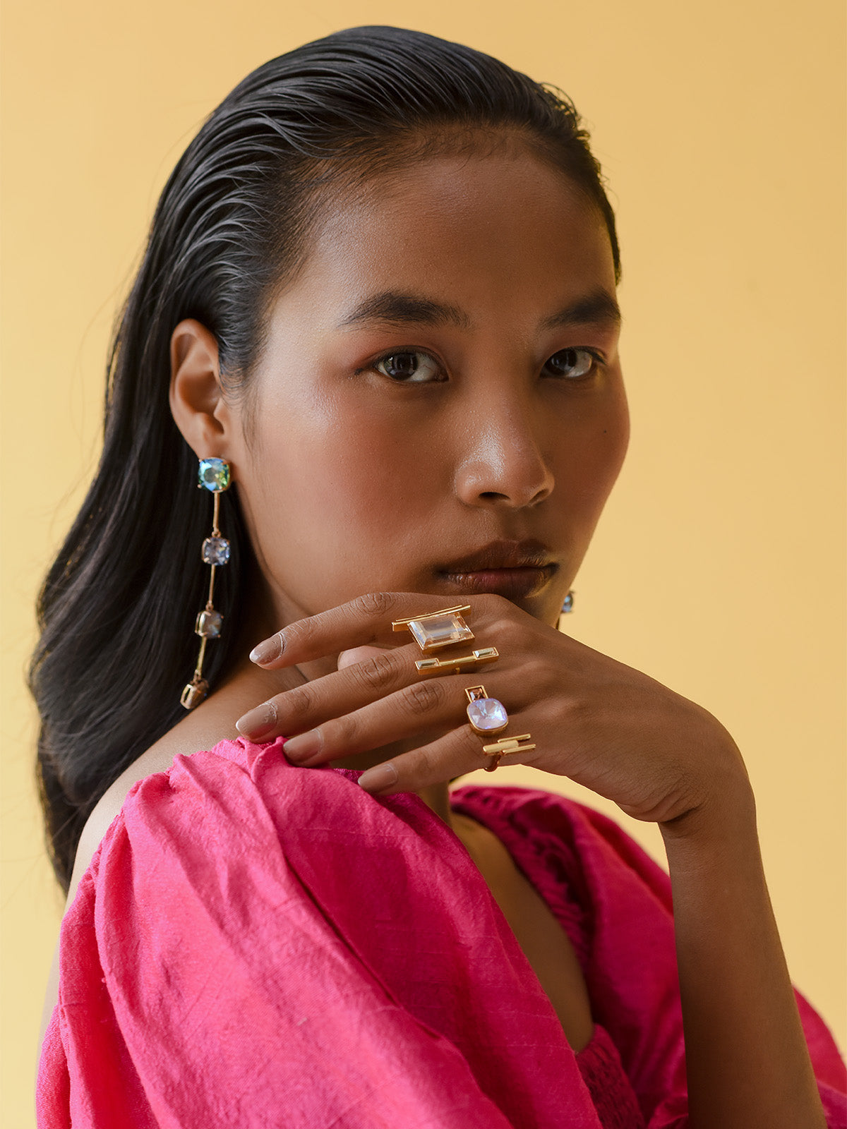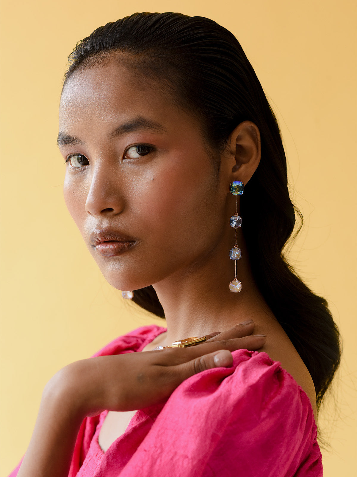 Jacqueline Fernandez in Gradient Crystal Danglers
