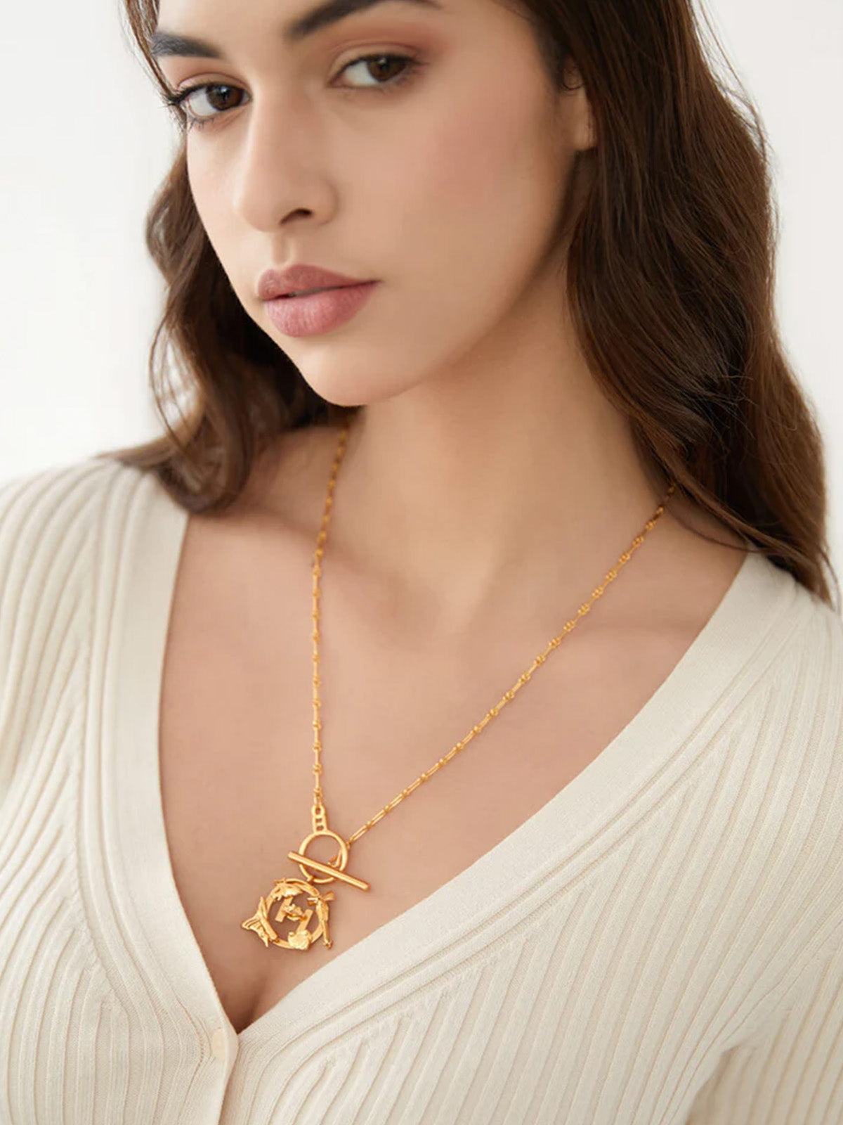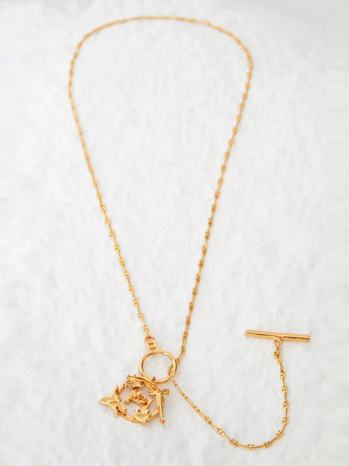 Immerse yourself in the intricacies of the O.H V Mini Pendant Necklace. Centered around the emblematic house motif with a 22K gold plated chain created with modernity and fluidity.