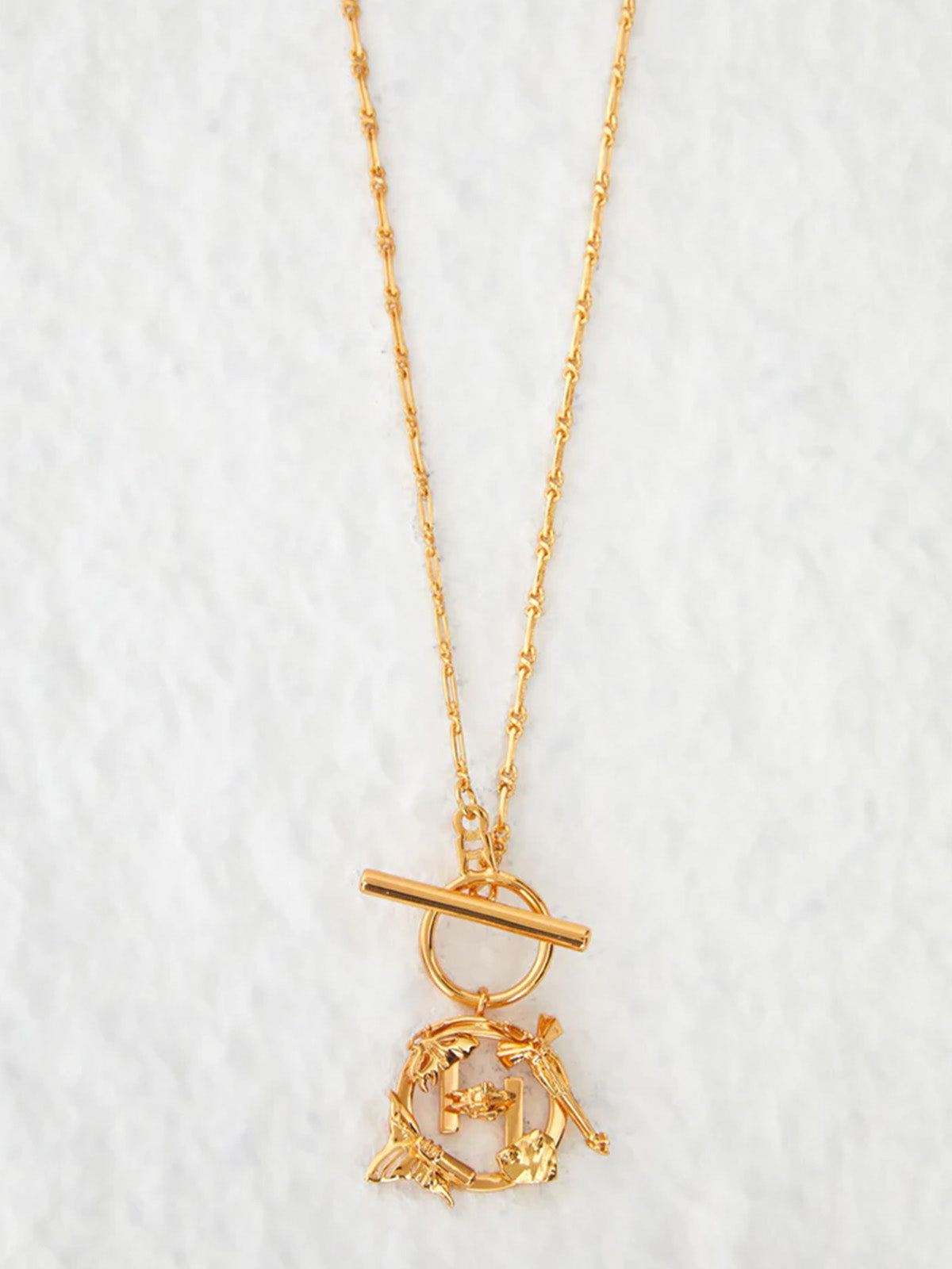 Immerse yourself in the intricacies of the O.H V Mini Pendant Necklace. Centered around the emblematic house motif with a 22K gold plated chain created with modernity and fluidity.