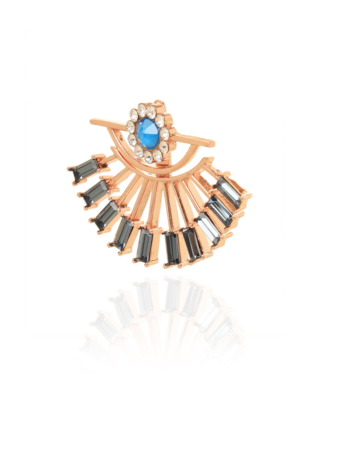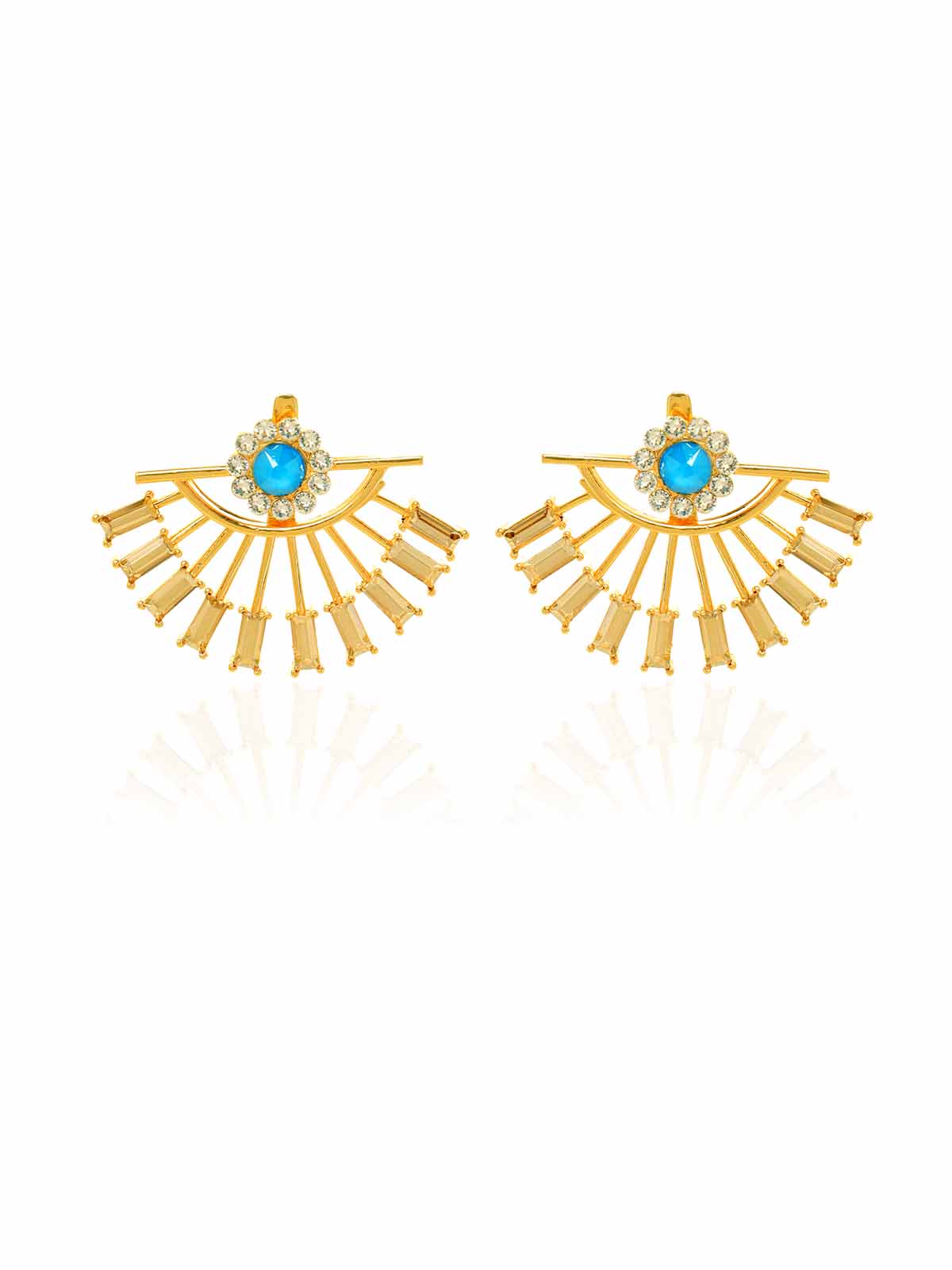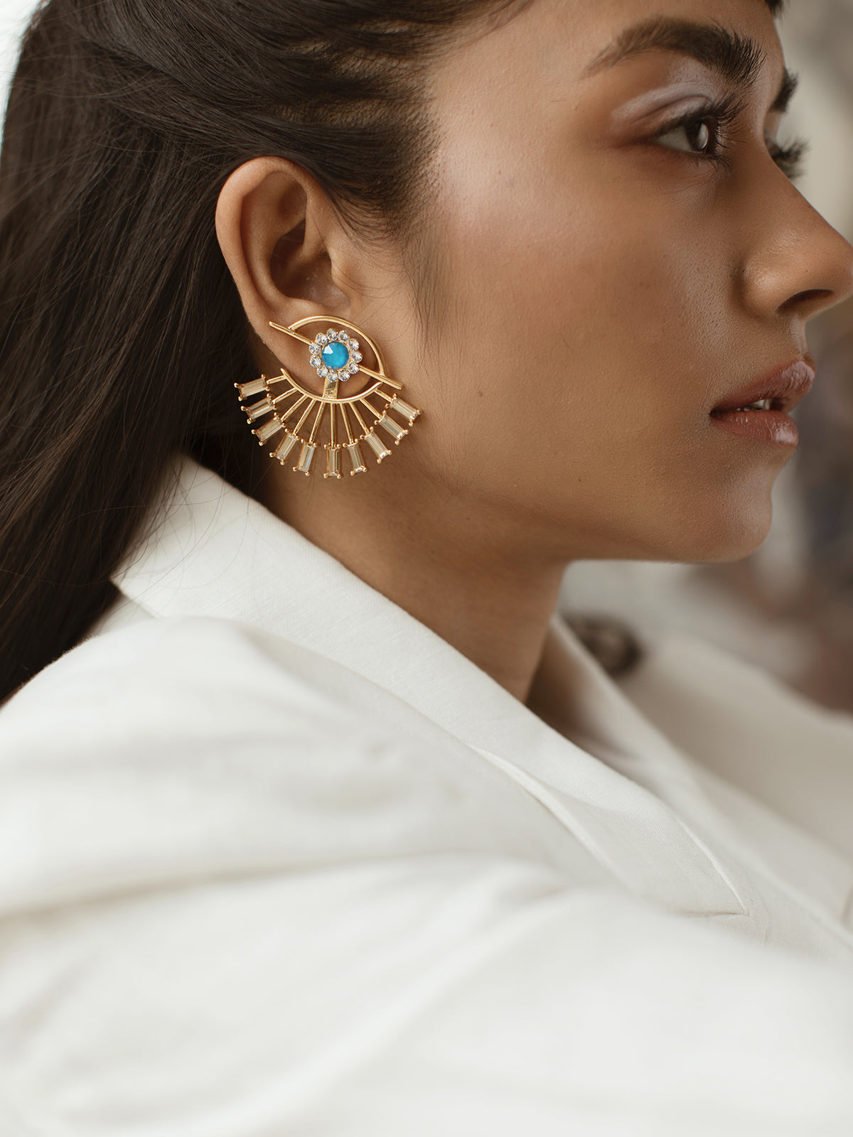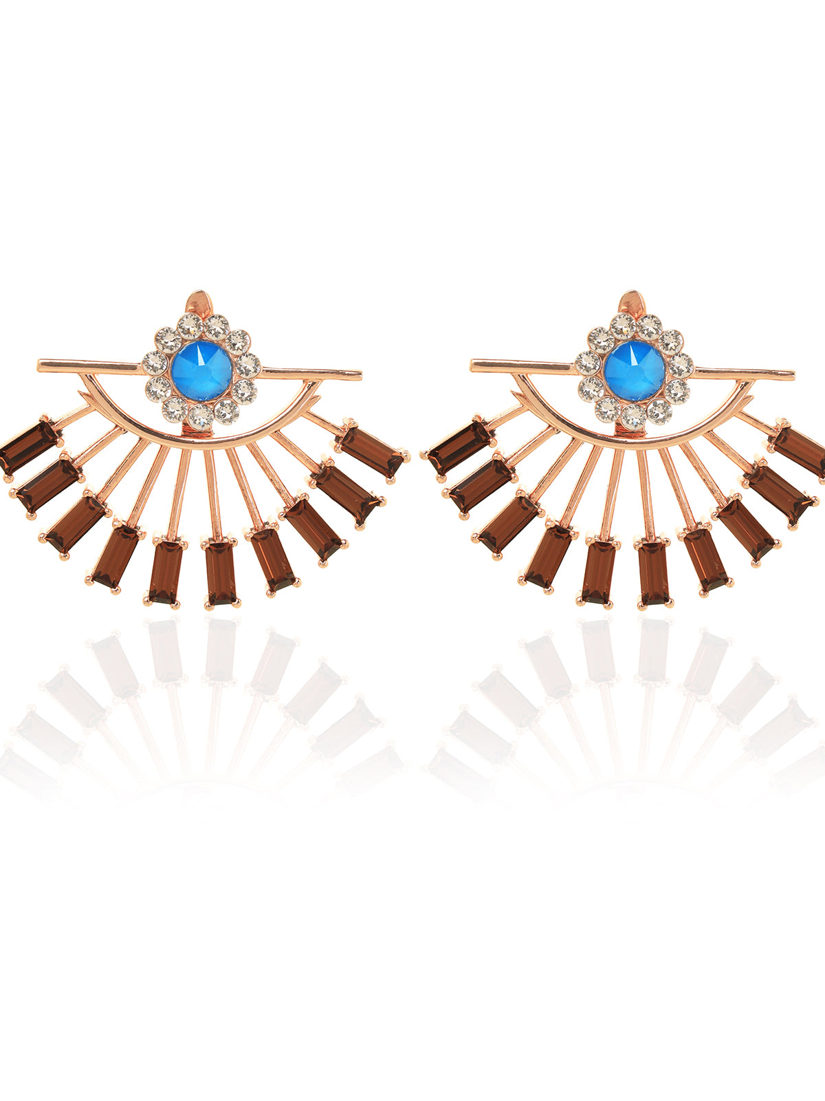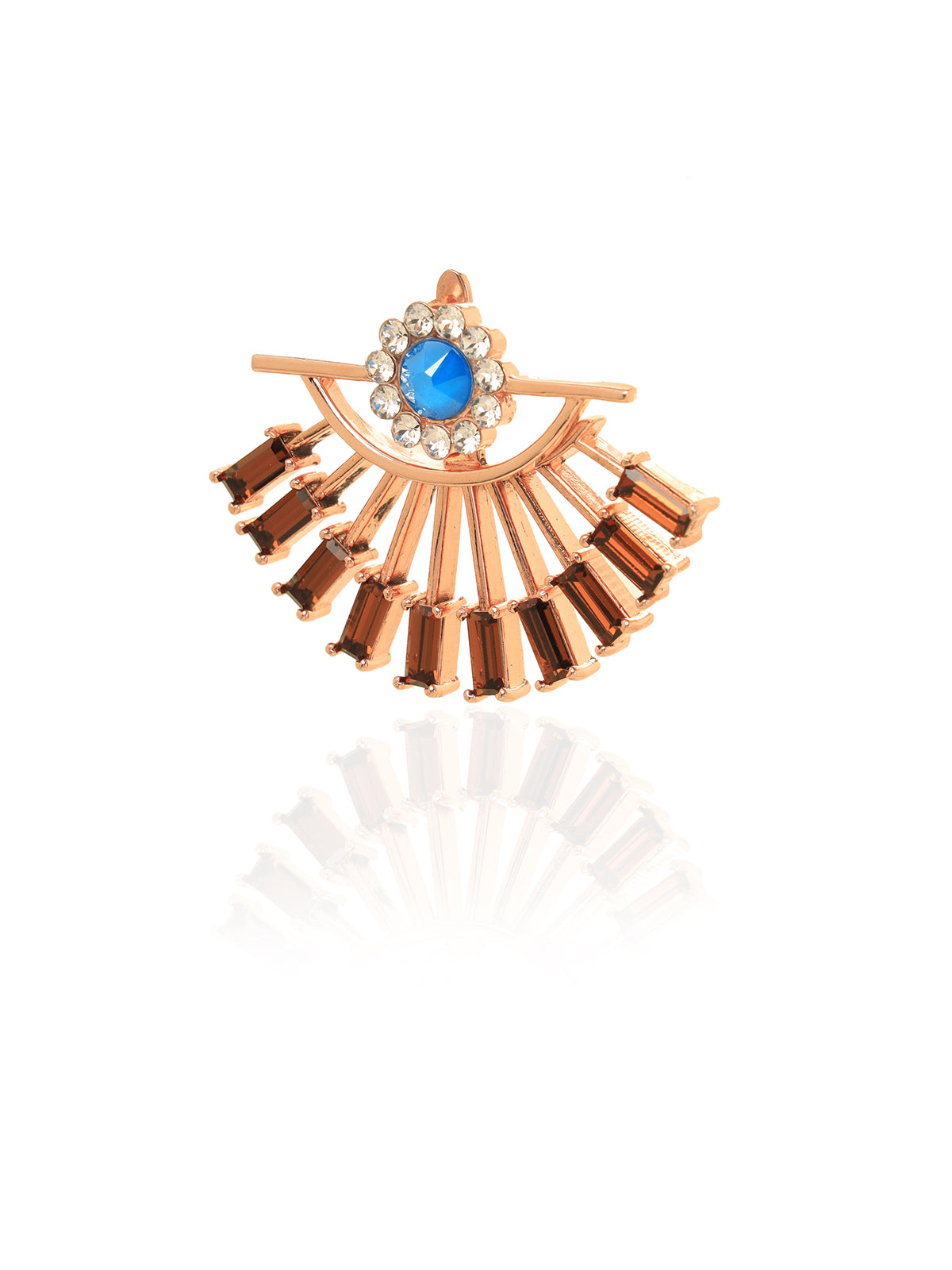 Detachable evil eye earrings studded with a blue round swarovski and rose pink baguettes- worn without the jacket as an earstud or with as a hanging