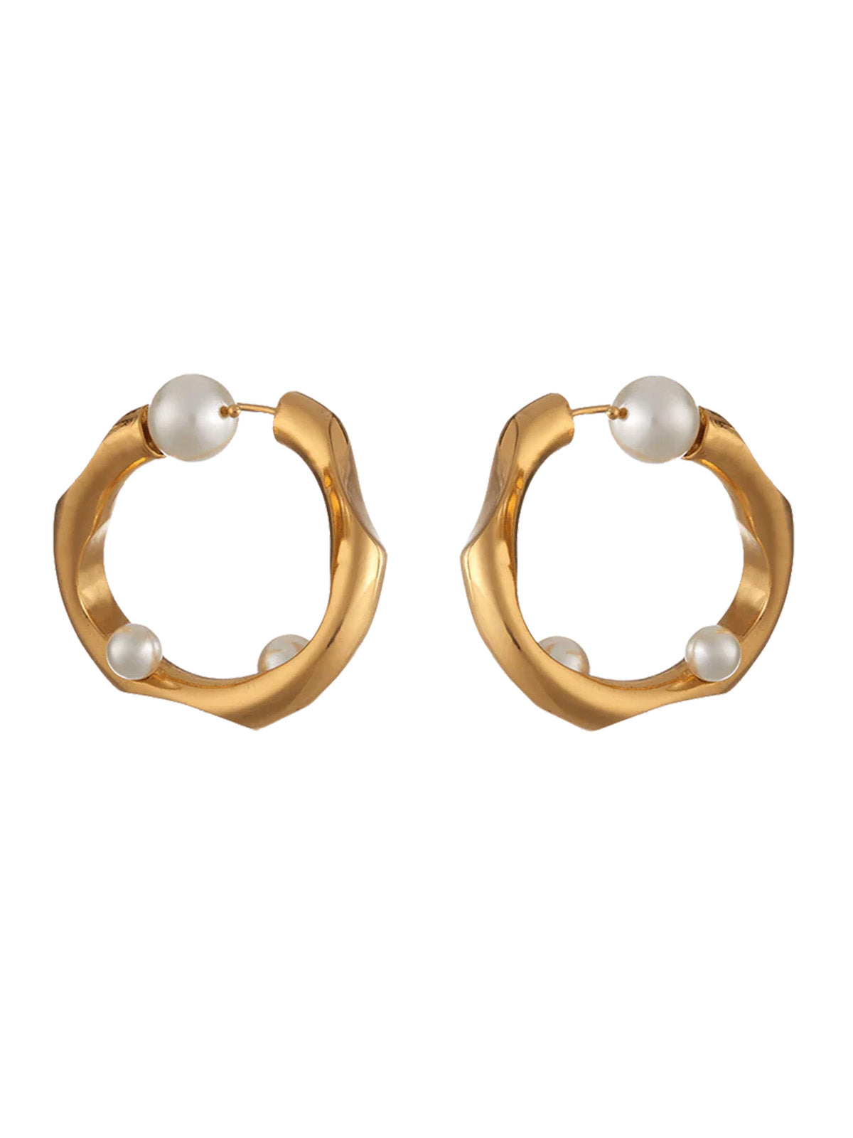 An ever-classic design, reimagined by the House's virtuosity to create modern heirlooms. Cast in a brilliant 22K gold finish, these pearl hoops reveal a unique silhouette, embellished with enchanting fine quality pearls lends an elegant-yet-edgy style. Wear yours with denims or let it sparkle away into the night with evening wear.