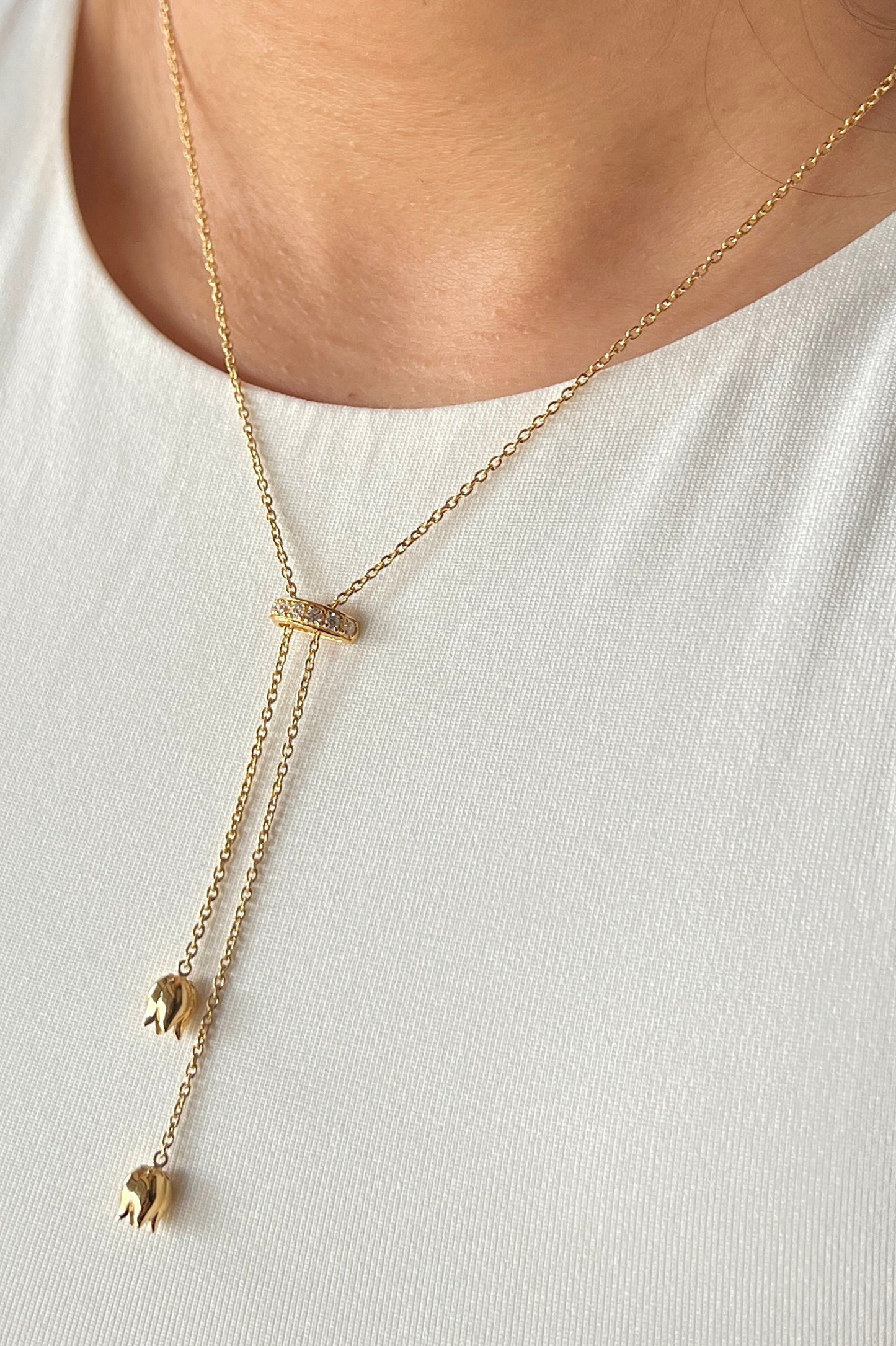Tulip Drop Lariat Golden Necklace