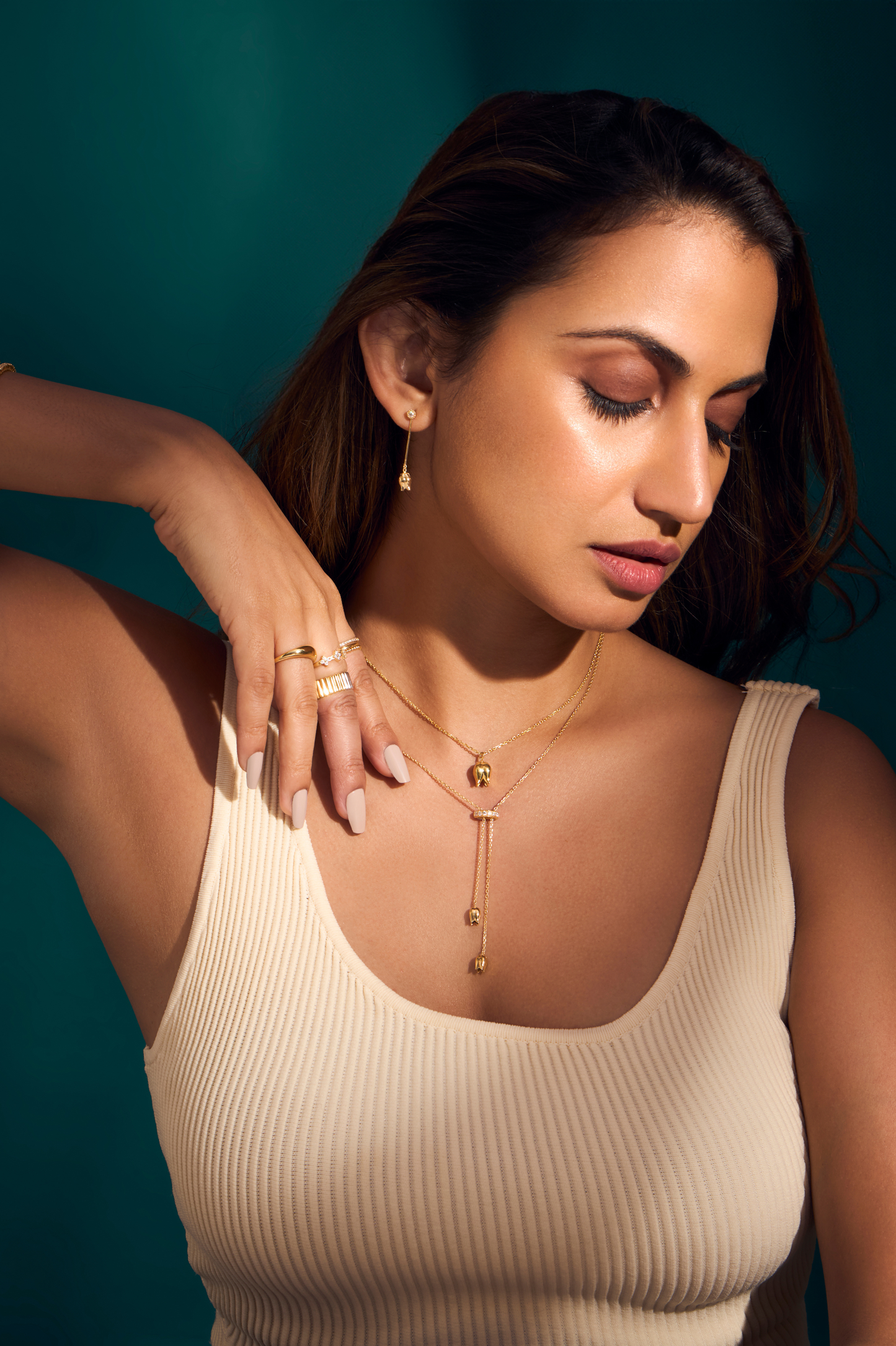 Elevate your style with our chic Tulip Lariat Necklace. Its sophisticated design and fluid lines creates a modern, elegant look and offers versatile styling options.
