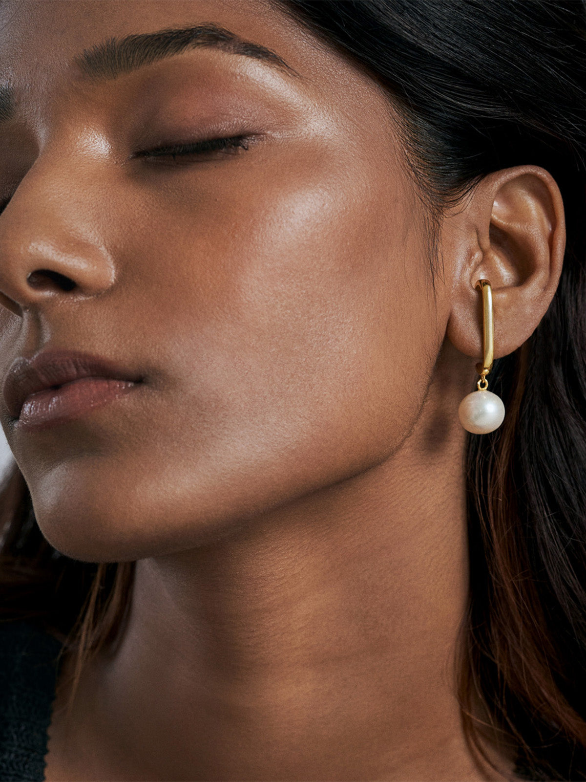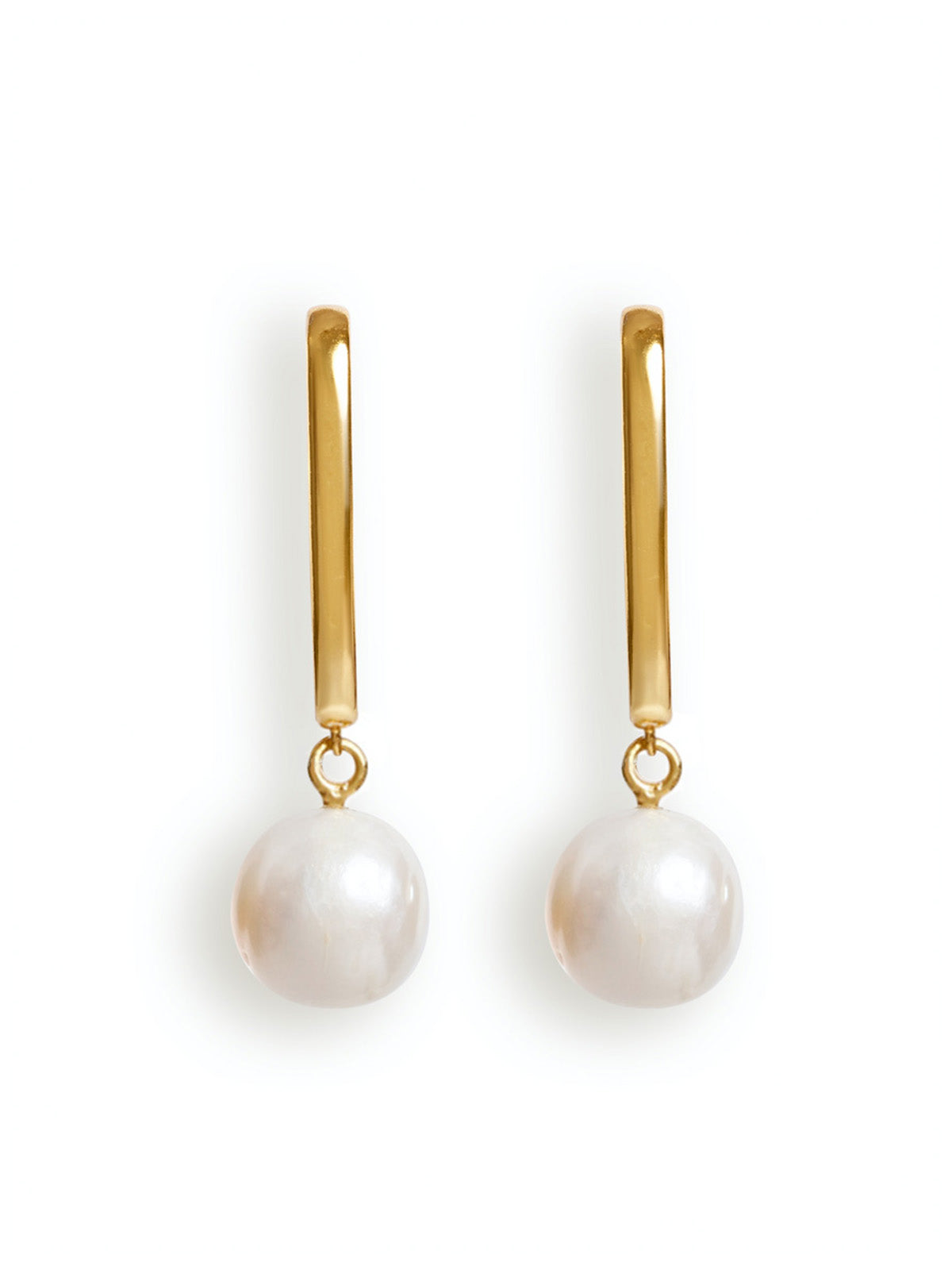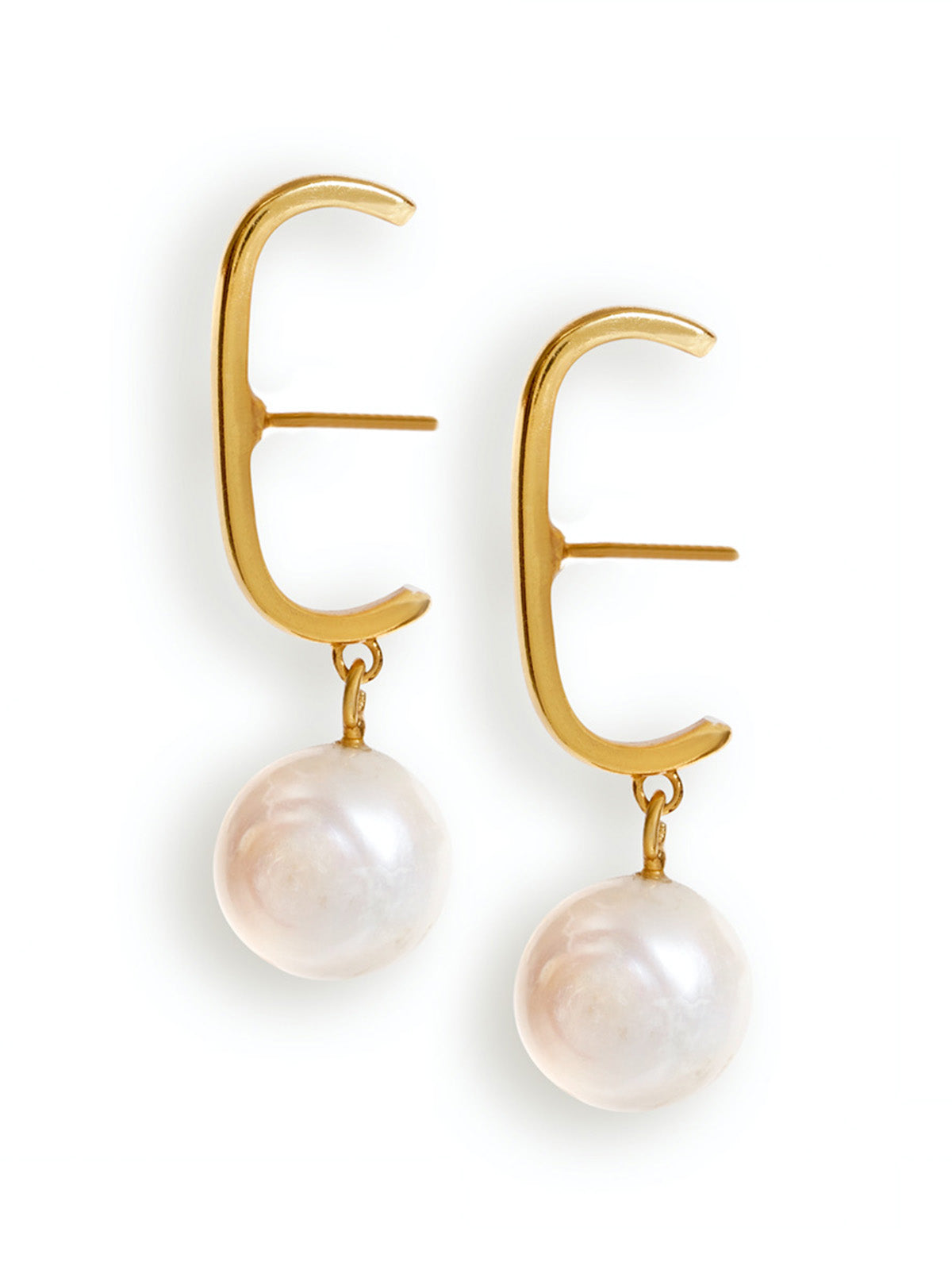 These pair of earrings featuring a classic combination of freshwater pearls and 925 sterling silver plated with 18kt gold.