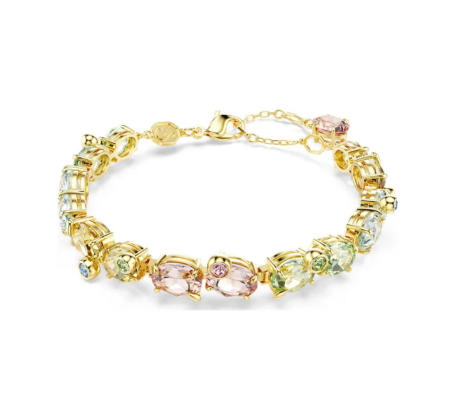 This playful bracelet is a perfect piece for self expression. Designed with a row of multi cut crystals and set in a bubble prong setting, this piece shouts energy and light.