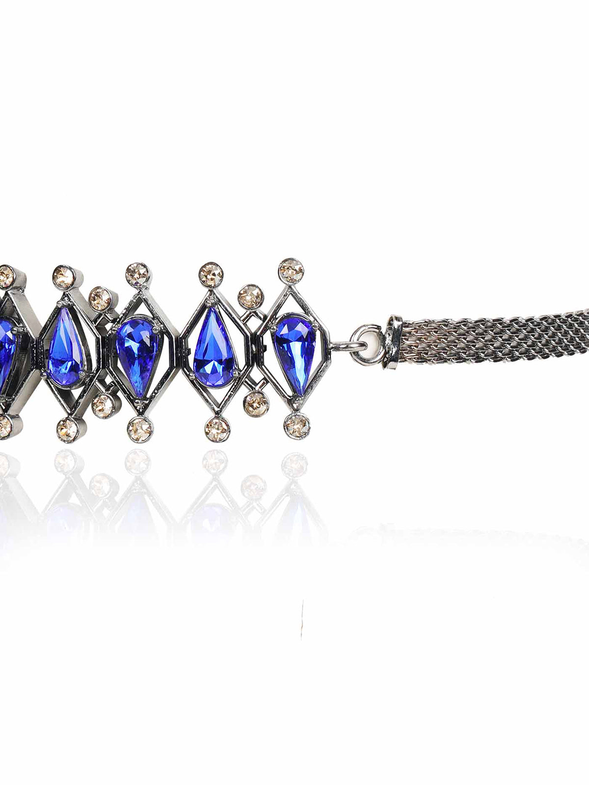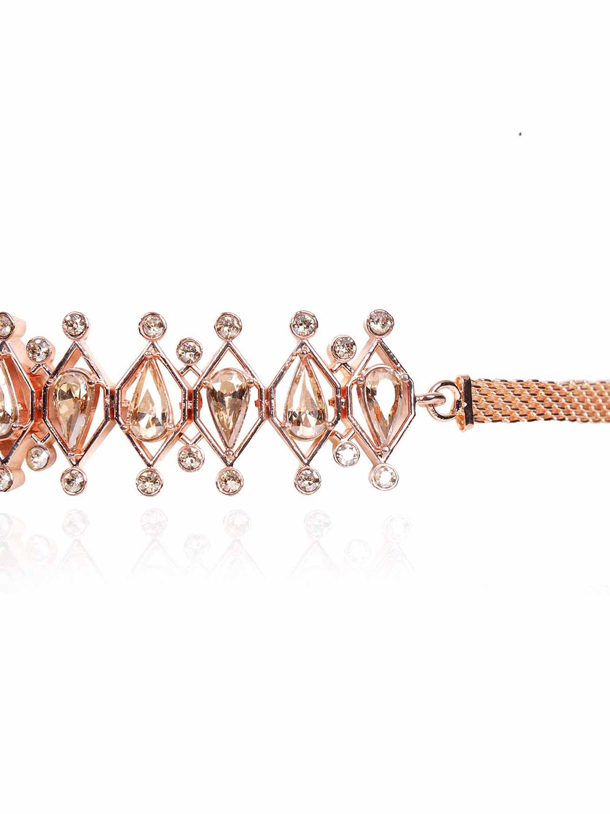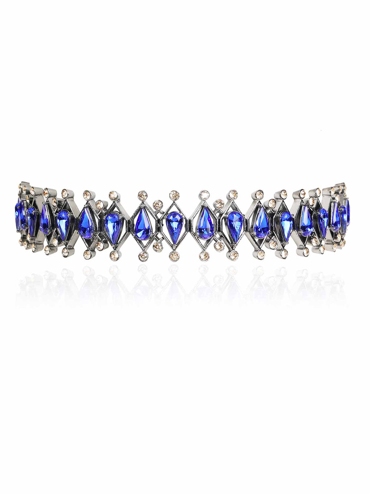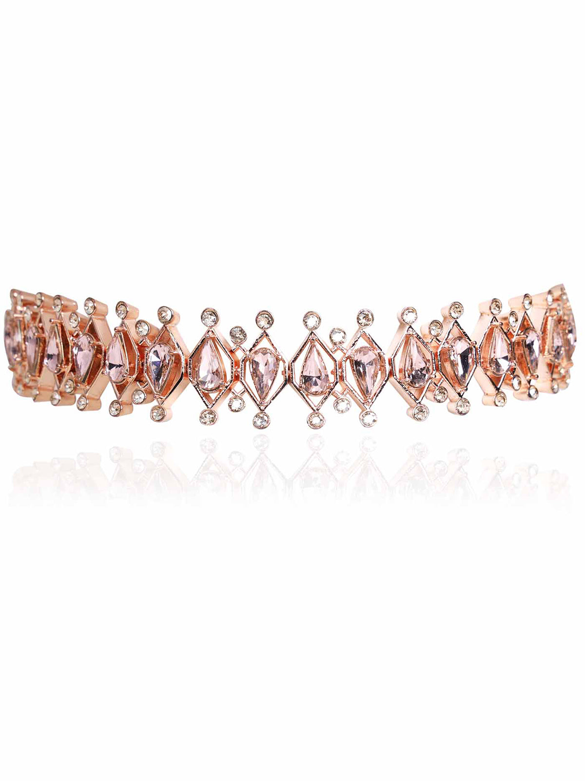 The soft tunes of the violin and memory of your last dance. This beautiful choker from our Rhythm collection is sculpted in a breathtaking cut work. It is bejewelled with fancy cut tear drop swarovski crystals that reflect light from every angle giving you that scintillating look.