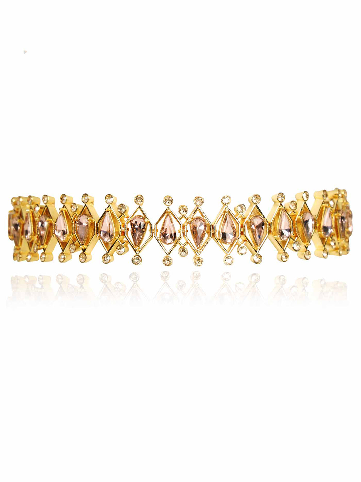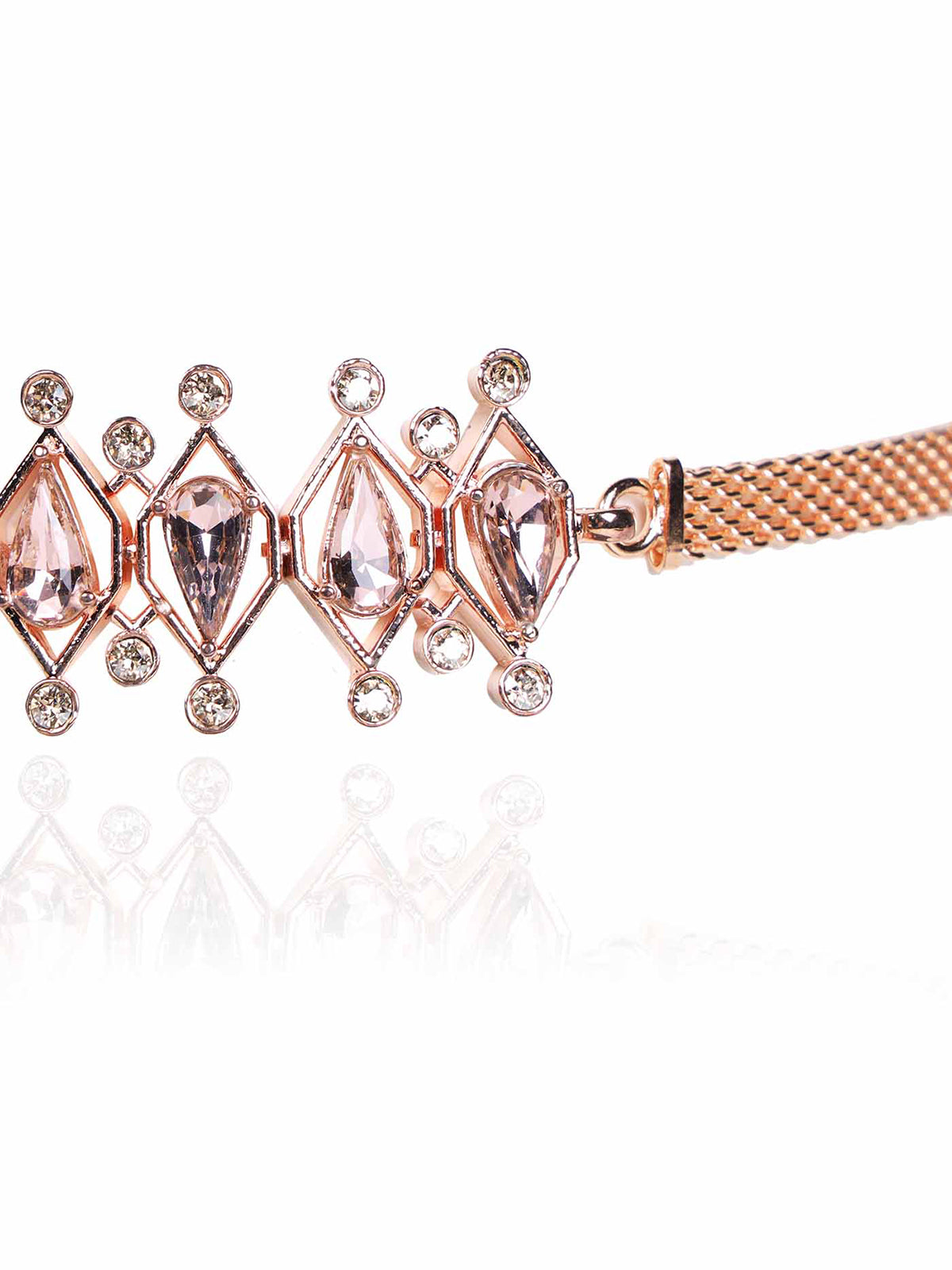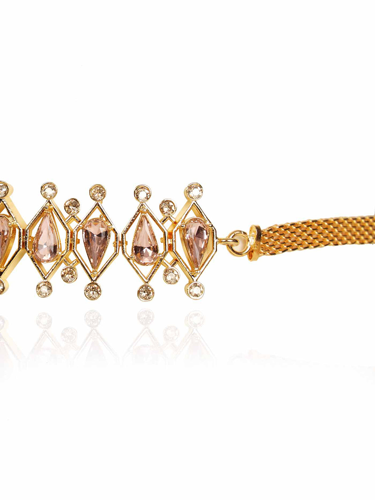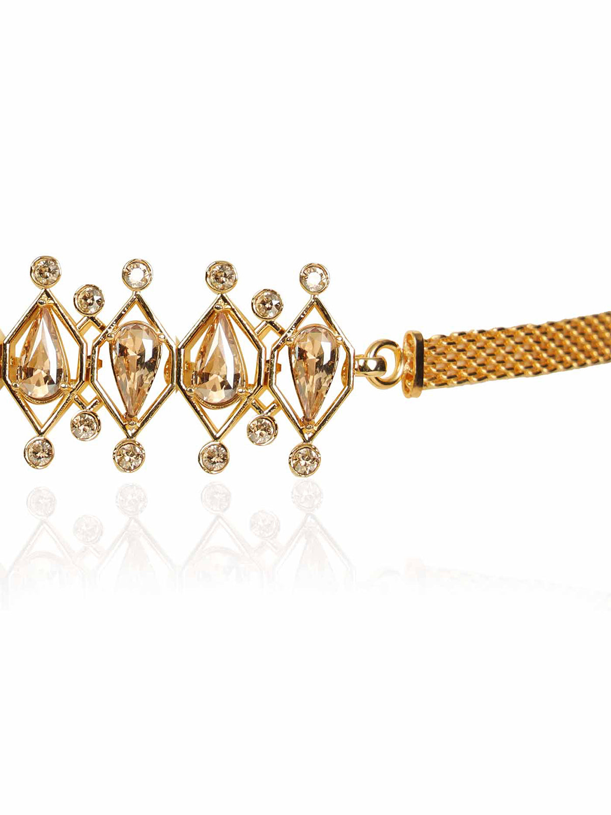 The soft tunes of the violin and memory of your last dance. This beautiful choker from our Rhythm collection is sculpted in a breathtaking cut work. It is bejewelled with fancy cut tear drop swarovski crystals that reflect light from every angle giving you that scintillating look.