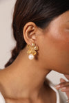 Taking the detailed fragments of nature, these earrings feature an exquisite flower dipped in gold with an elegant pearl hanging beneath it. Regal, glamourous and simple, all at once.