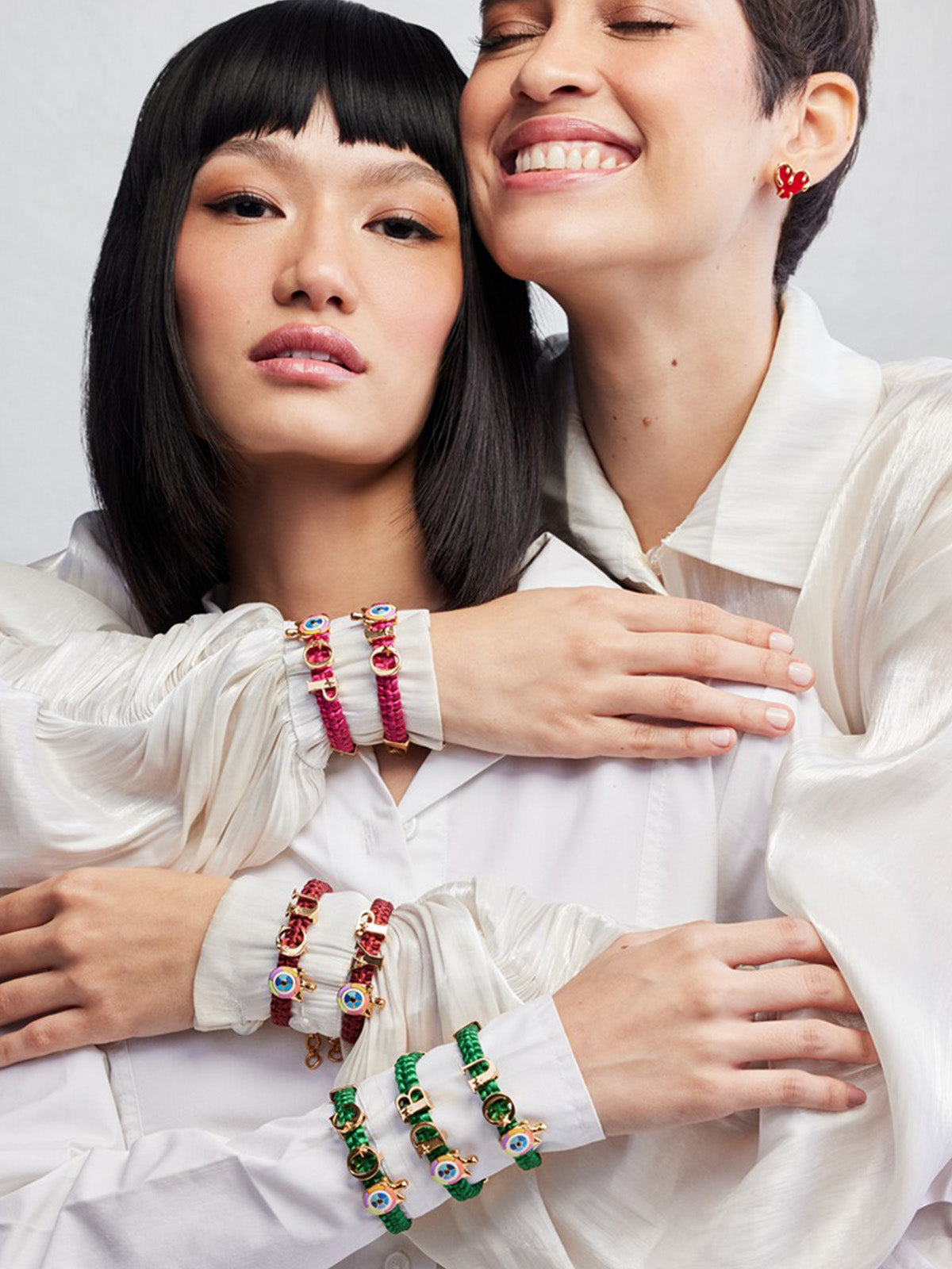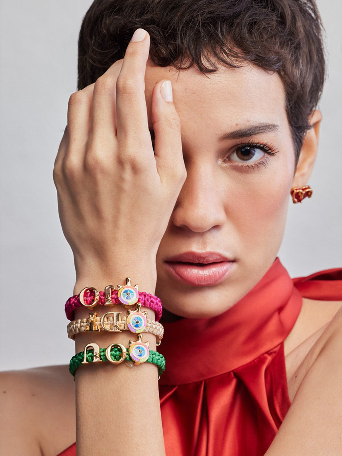 Designed to complement his personal style or hers, the (name) is a bracelet intertwined with love. Featuring a vibrant satin strap with an evil eye charm and custom initials, the bracelet makes a perfect gift. Its strap is adjustable and ensures a snug fit all day long.