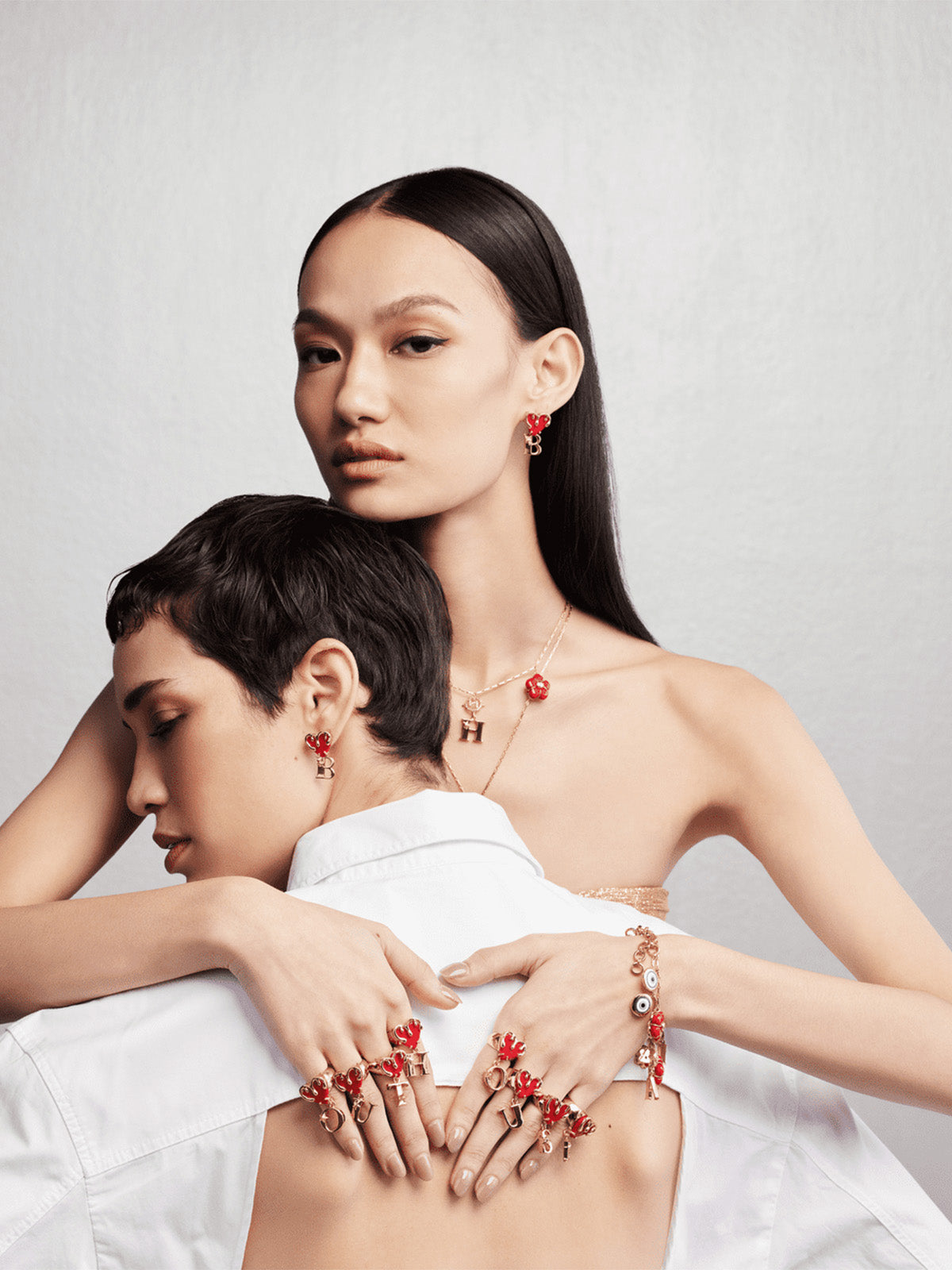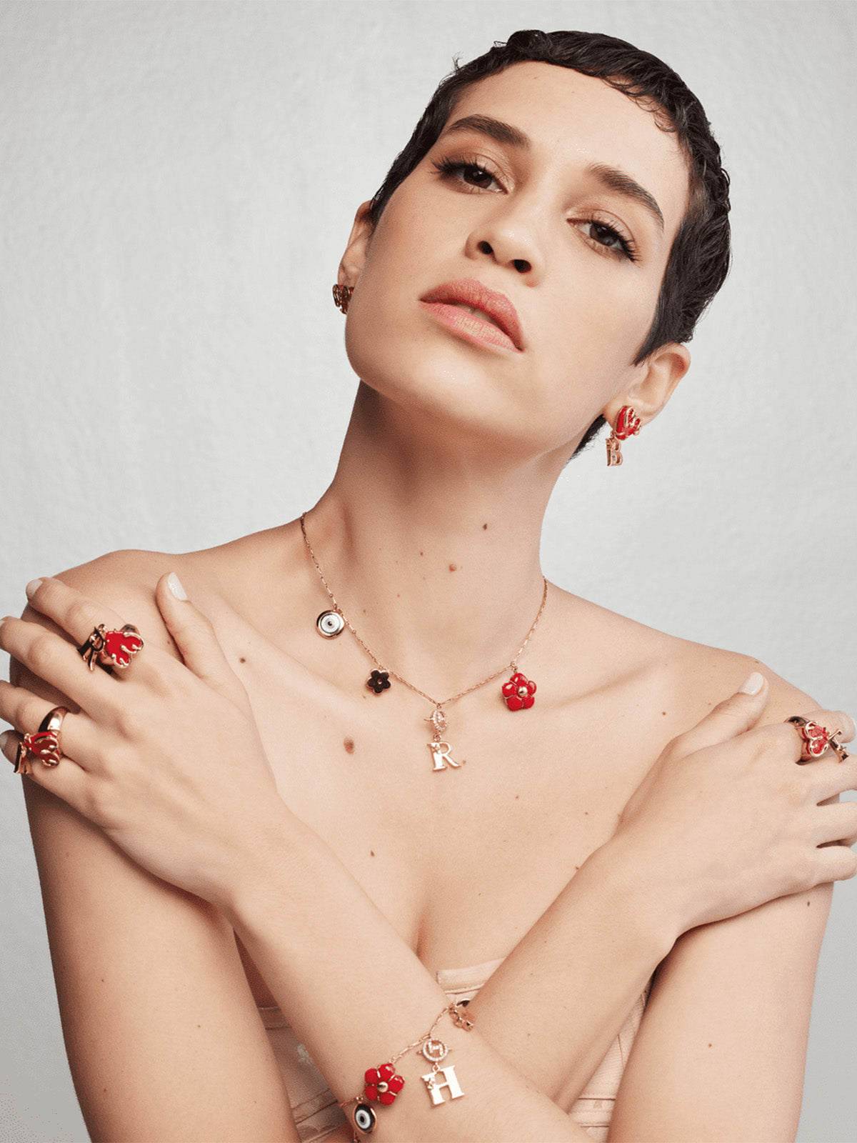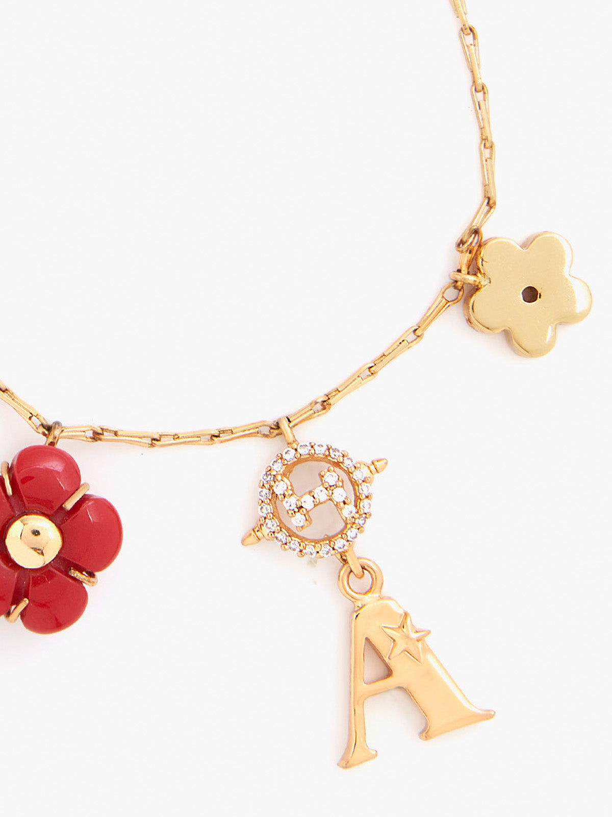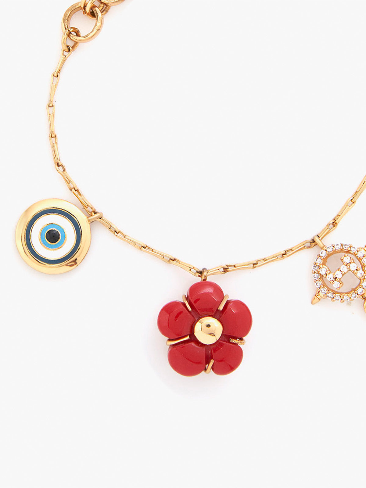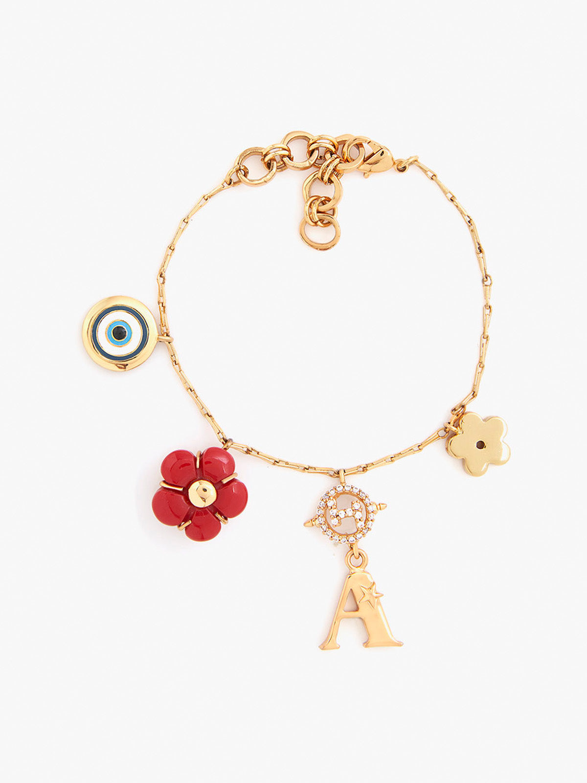 The true essence of playfulness is captured in various charms of the (name). Featuring an evil eye, five-petal flowers, the House's mini monogram and a personalized initial dangling from a gold-plated chain, the bracelet is a treasure to flaunt everyday. Add it to your wardrobe or your loved one's this celebratory season as the new creation expresses joy till eternity.
