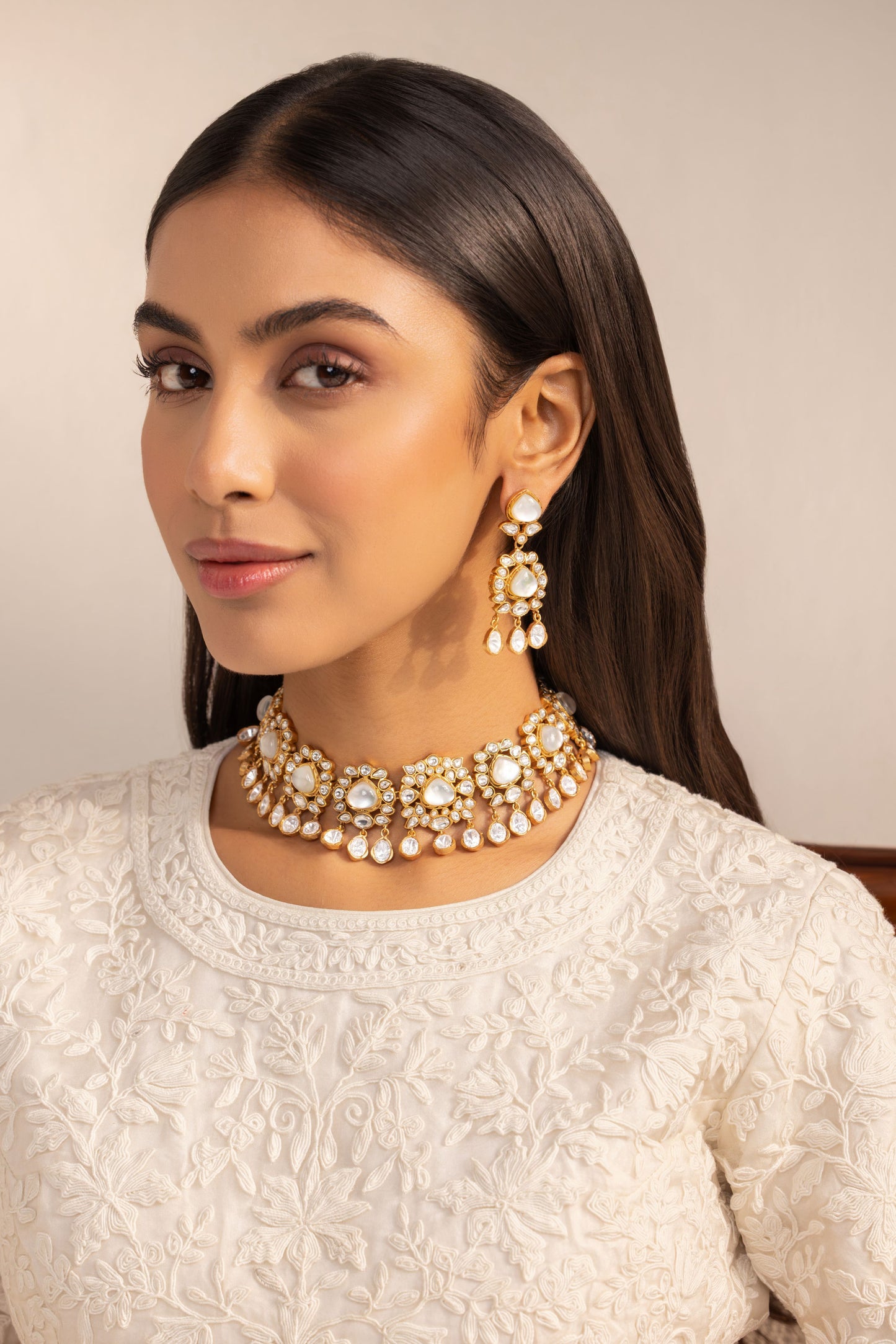 Stones Used : Mother of Pearl & Polki